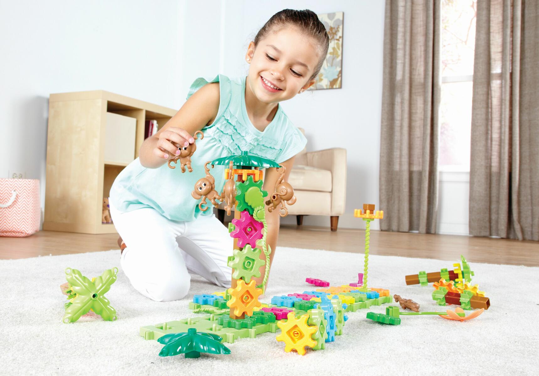 103 delar. Ett roligt byggsystem där barnen kan bygga sin egen fantasifulla djungel. Använd basplattorna och fyll sedan på med kugghjul, palmer, lianer och apor som svingar sig mellan träden. Utvecklar logiskt tänkande, motorik och koordination. Basplattorna är 10,5x10,5 cm, kugghjulen är 6 cm i diameter. Av ABS, PP samt PVC utan förbjudna ftalater. Från 4 år.