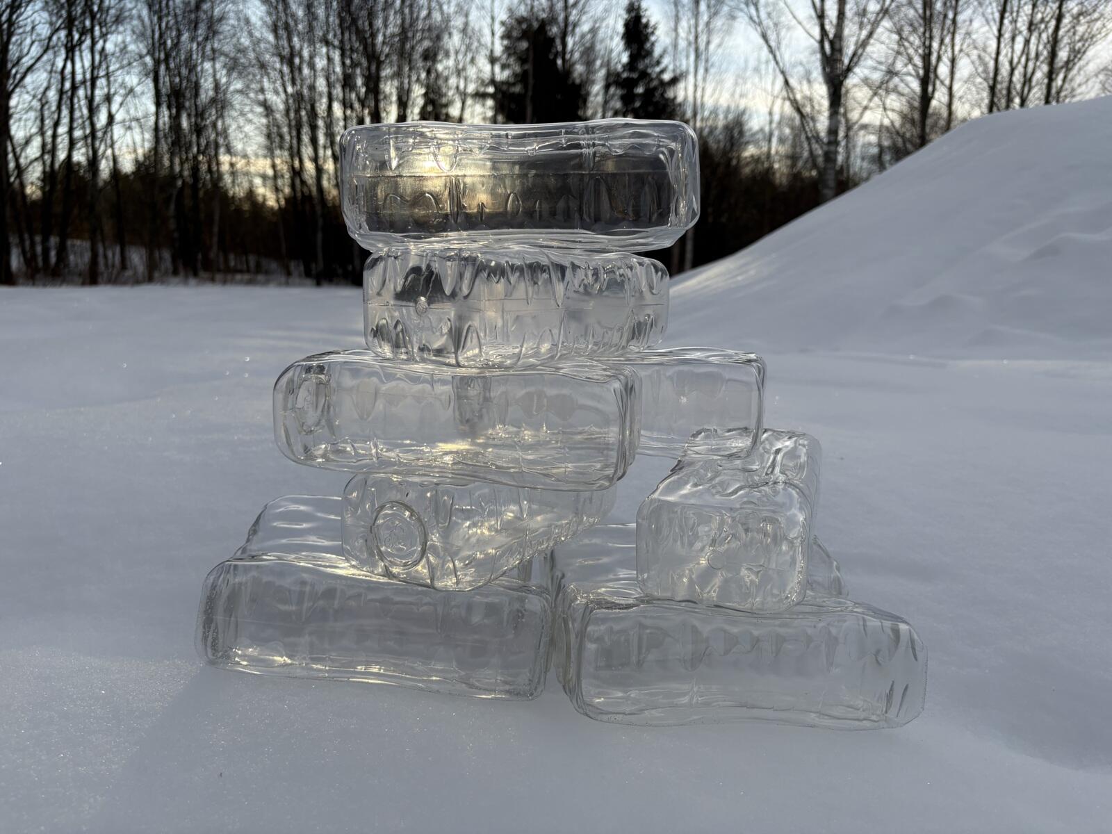 30 delar. Bygg en isig skapelse med de här genomskinliga, glänsande tegelstenarna. Gestalta ett vintrigt sagoland som du formger och bygger själv. Prova gärna att bygga med klossarna i riktig snö. Har en yta med en ojämn struktur. Tillverkade av harts. PVC-fri. Från 10 månader.