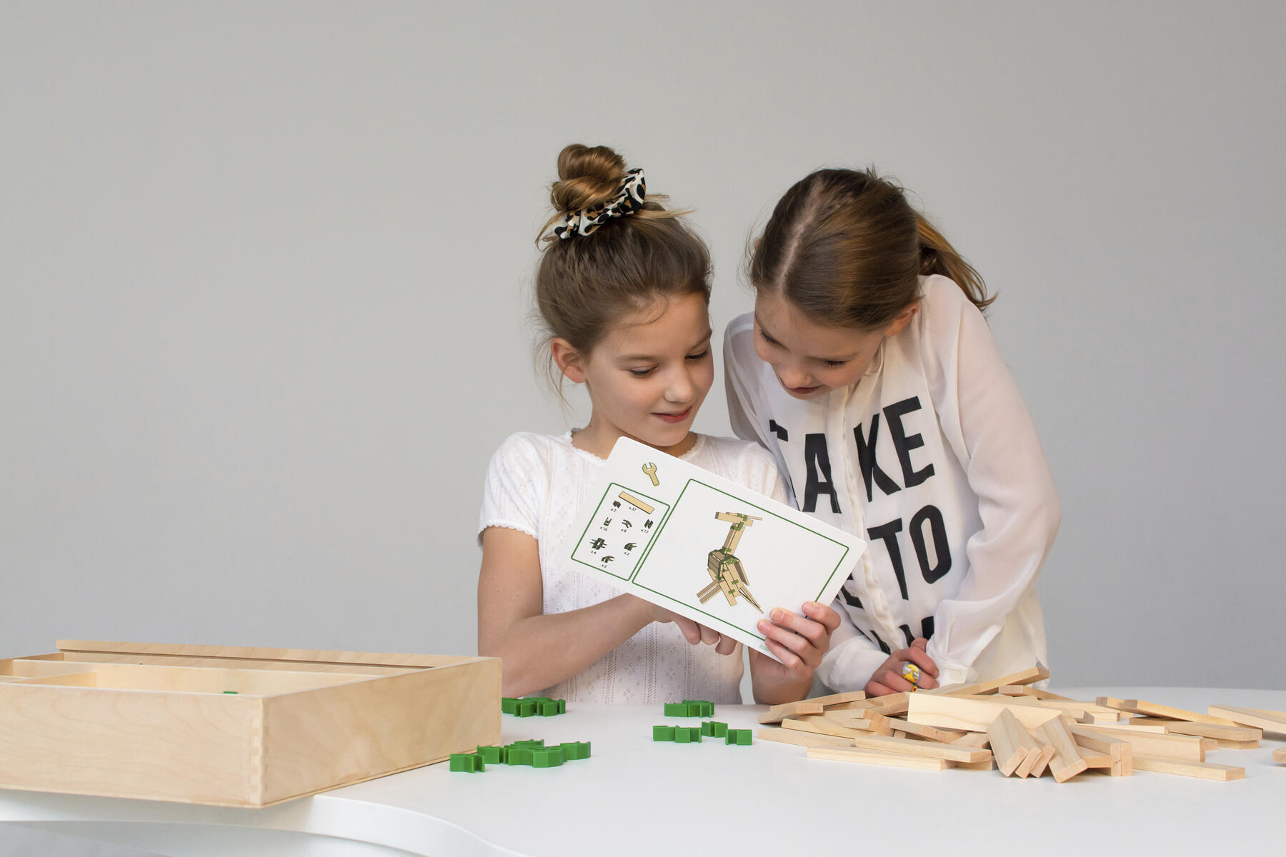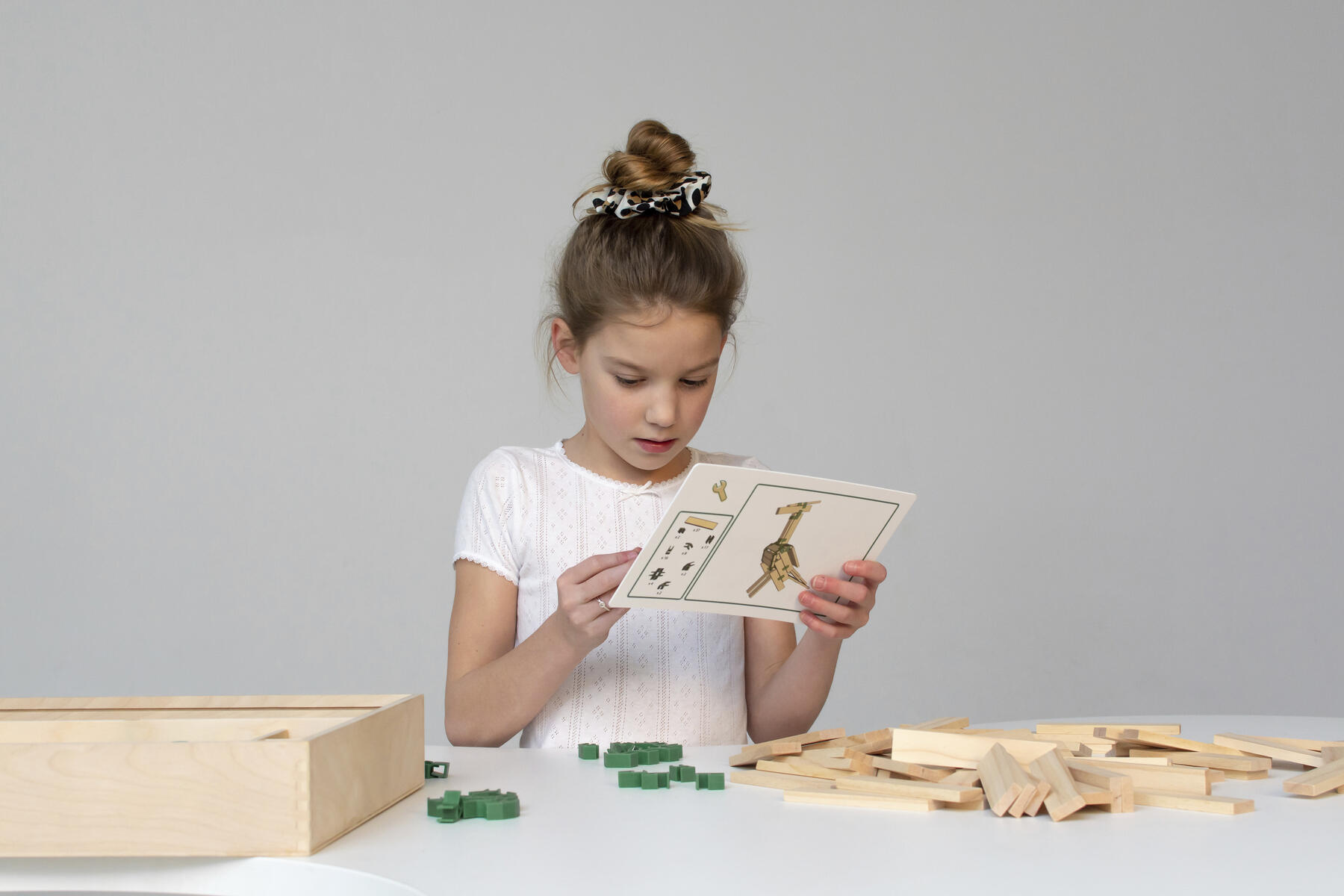 Bygg och lär om olika synvinklar. Bygg enligt de transparenta övningskorten som sätts upp på träskivan. Ökande svårighetsgrad gör att barnen gradvis utvecklar sitt spatiala tänkande. Material: trä, ABS. PVC-fri. Från 3 år.