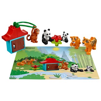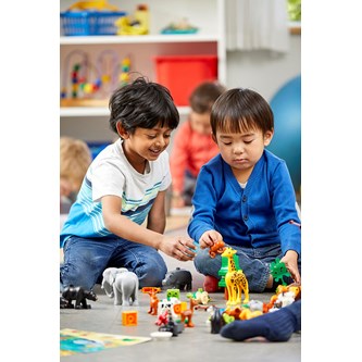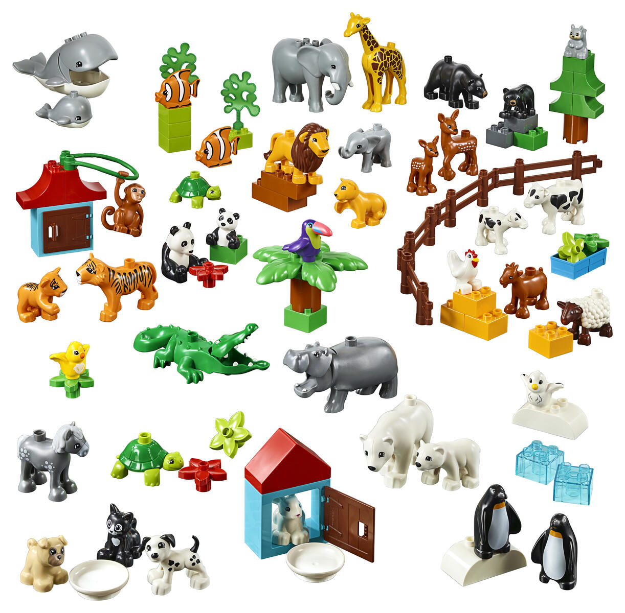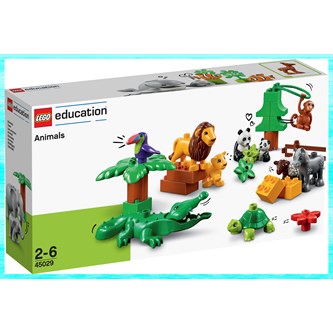 Utforska djur från hela världen och från olika miljöer, som t.ex. skogen, bondgården, havet och savannen. 5 inspirationskort medföljer. Setet innehåller 40 olika DUPLO-djur och 50 tillbehör. Material: ABS. PVC-fri. Från 2 år.