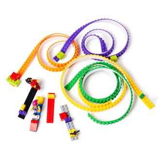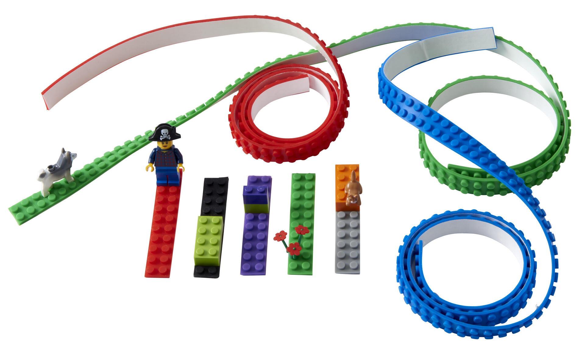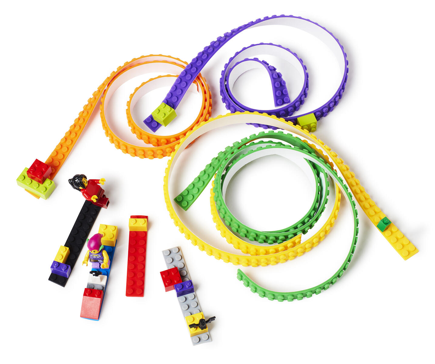 1 m/rulle. Den här tejpen är kompatibel med alla LEGO-klossar och ger nya möjligheter att bygga runt hörn, på krökta ytor, längs hyllor etc. Fäst en längd StickyBricky LEGO-tejp på en slät yta och bygg sedan med klossarna på tejpen. Av silikon, helt BPA-fri. Handtvätt. PVC-fri. Från 4 år.