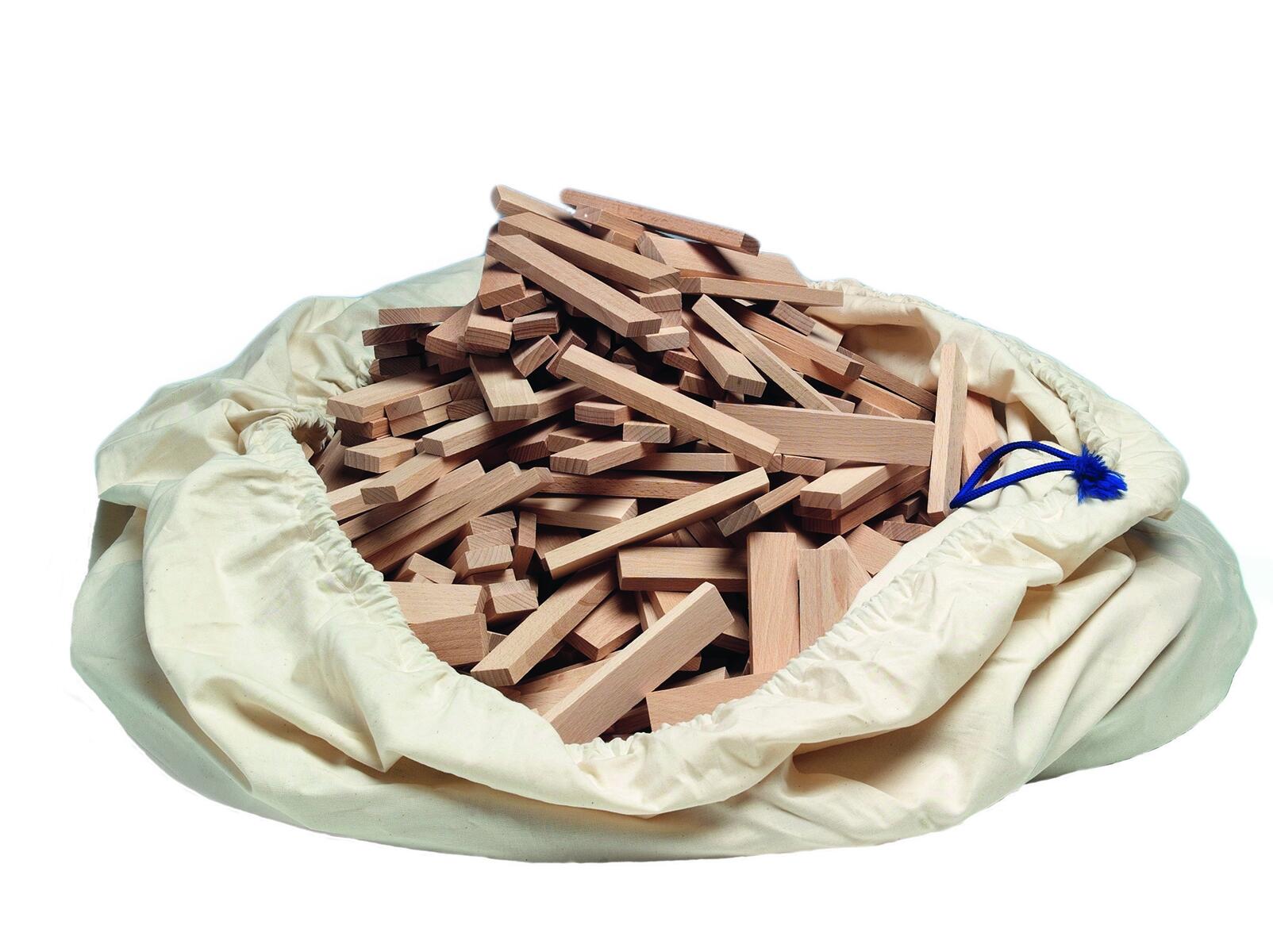 1000 delar. Kapla byggstavar i trälåda med lock och hjul. 2 byggvägledningar ingår. Räcker till många timmars kreativa byggkonstruktioner. Av PEFC-märkt björk. PVC-fri. Från 2 år.
