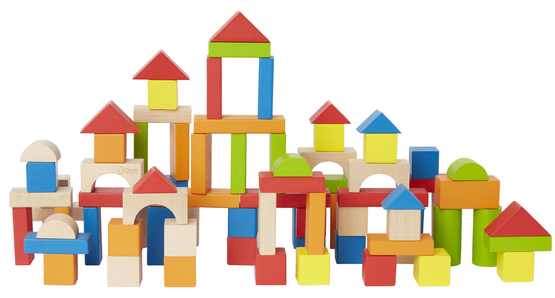 100 delar. Låt barnen leka byggnadsarkitekter med hjälp av dessa byggklossar och under tiden öva på färg, rumsuppfattning och konstruktion. Här går lek och lärande hand i hand och aktiviteten kan utföras ensam eller i samarbete med andra. Barnen får möjlighet att utveckla sin finmotorik, koncentration och sitt kreativa tänkande. Använd klossarna tillsammans med annat material och bygg upp en ny miljö att utforska med hjälp av tyg och figurer. Varför inte sätta barnens verk framför en projektor och undersöka hur skuggan faller? Eller placera klossarna i ett hörn med två speglar och utforska härliga symmetrier och djup? Byggklossarna erbjuder många möjligheter till kreativ lek och utforskande. Förvaringspåse medföljer. Mått: Minsta klossen är 3x3 cm. Av FSC-märkt trä. PVC-fri. Från 1 år.