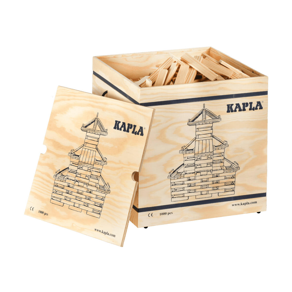 1000 delar. Kapla byggstavar i trälåda med lock och hjul. 2 byggvägledningar ingår. Räcker till många timmars kreativa byggkonstruktioner. Av PEFC-märkt björk. PVC-fri. Från 2 år.