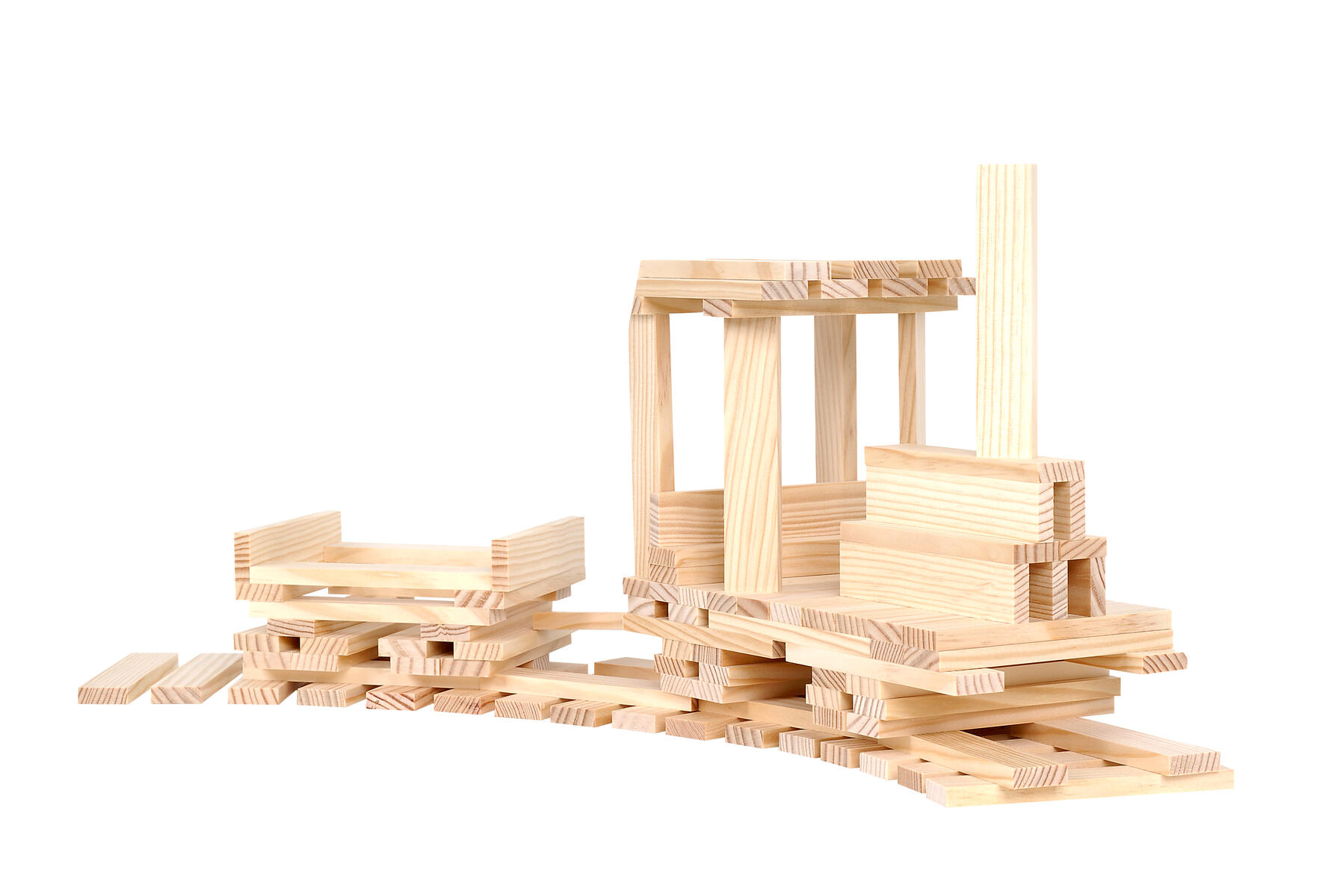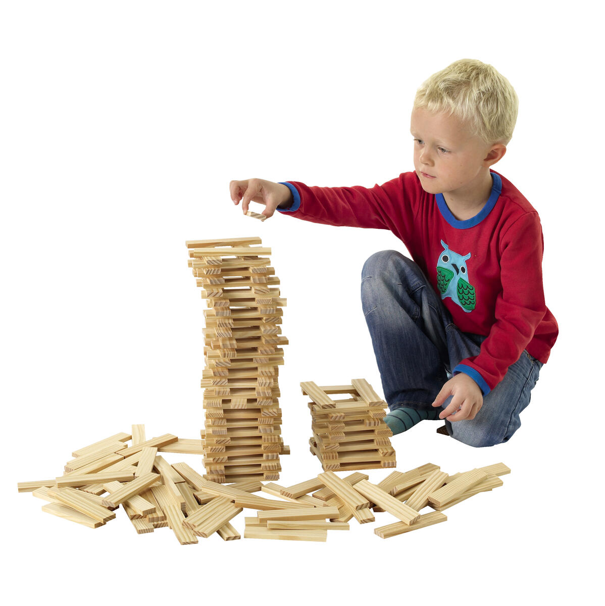 200 delar. Kapla byggstavar i förvaringslåda med lock. Byggidéer medföljer. Av PEFC-märkt björk. PVC-fri. Från 2 år.