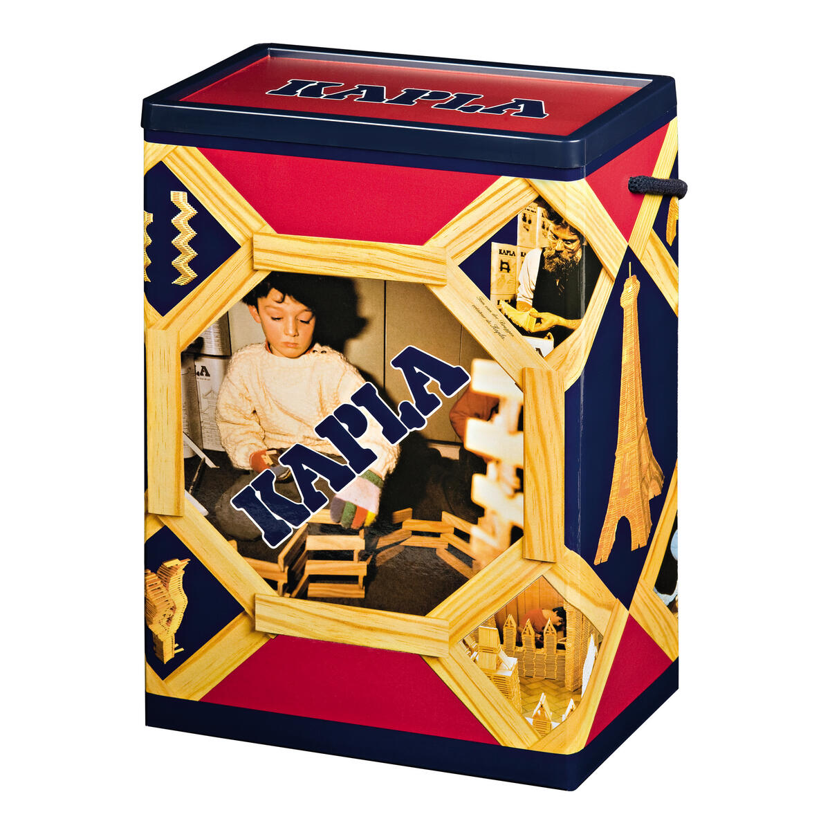 1000 delar. Kapla byggstavar i trälåda med lock och hjul. 2 byggvägledningar ingår. Räcker till många timmars kreativa byggkonstruktioner. Av PEFC-märkt björk. PVC-fri. Från 2 år.