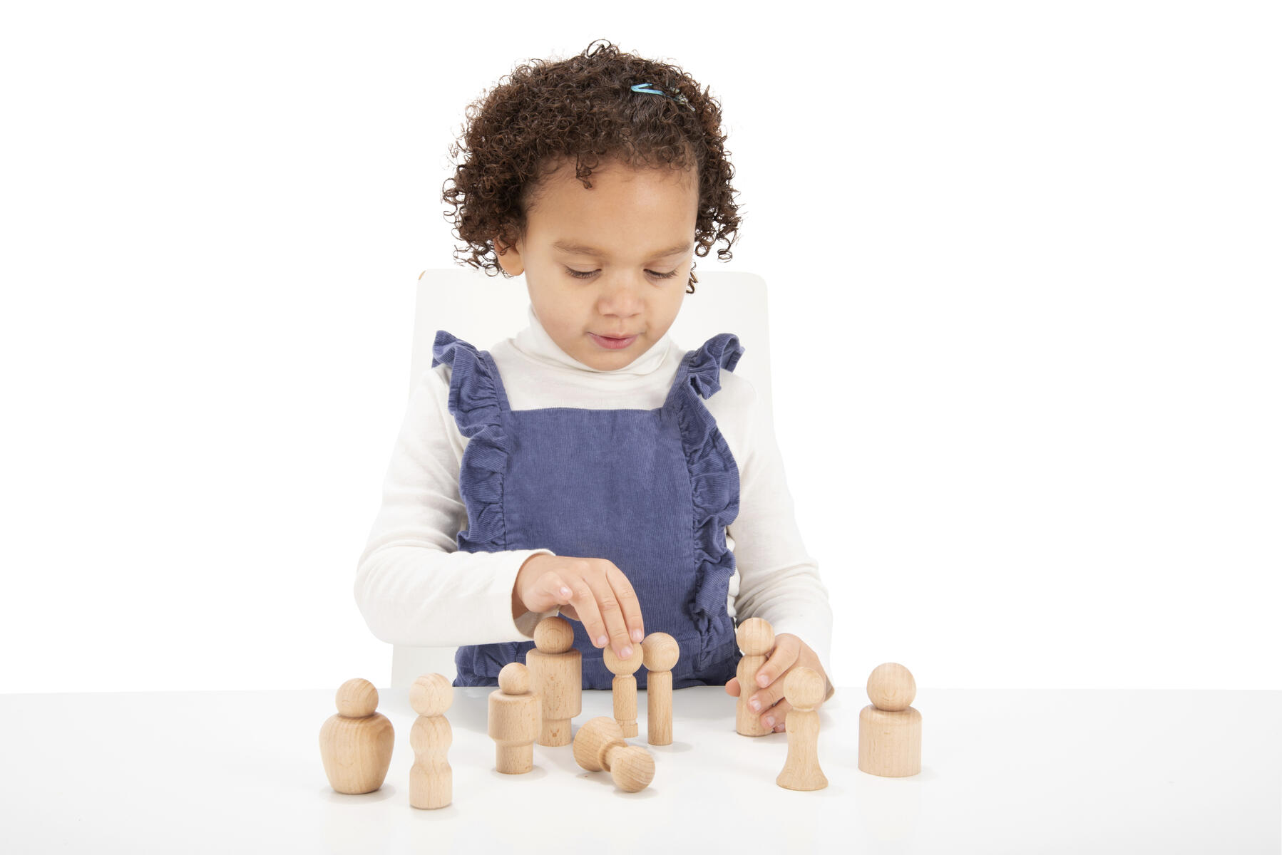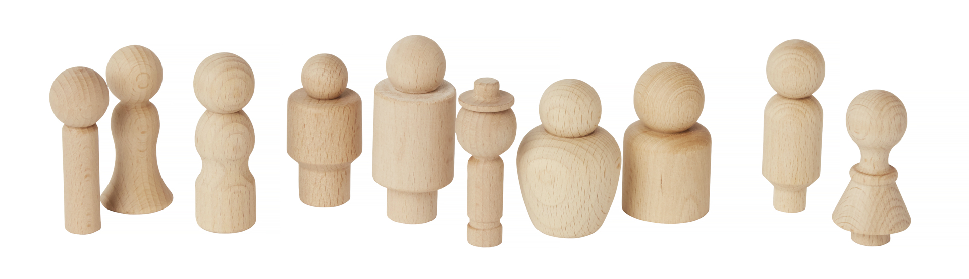 10 delar. Träfigurer i olika former och storlekar tillverkade av naturligt bokträ. Låt barnen lära sig om likheter och skillnader, eller komplettera byggleken. Inkluderar bomullspåse för enkel förvaring. Mått: 65-78 mm. Av FSC-märkt trä. PVC-fri. Från 18 månader.