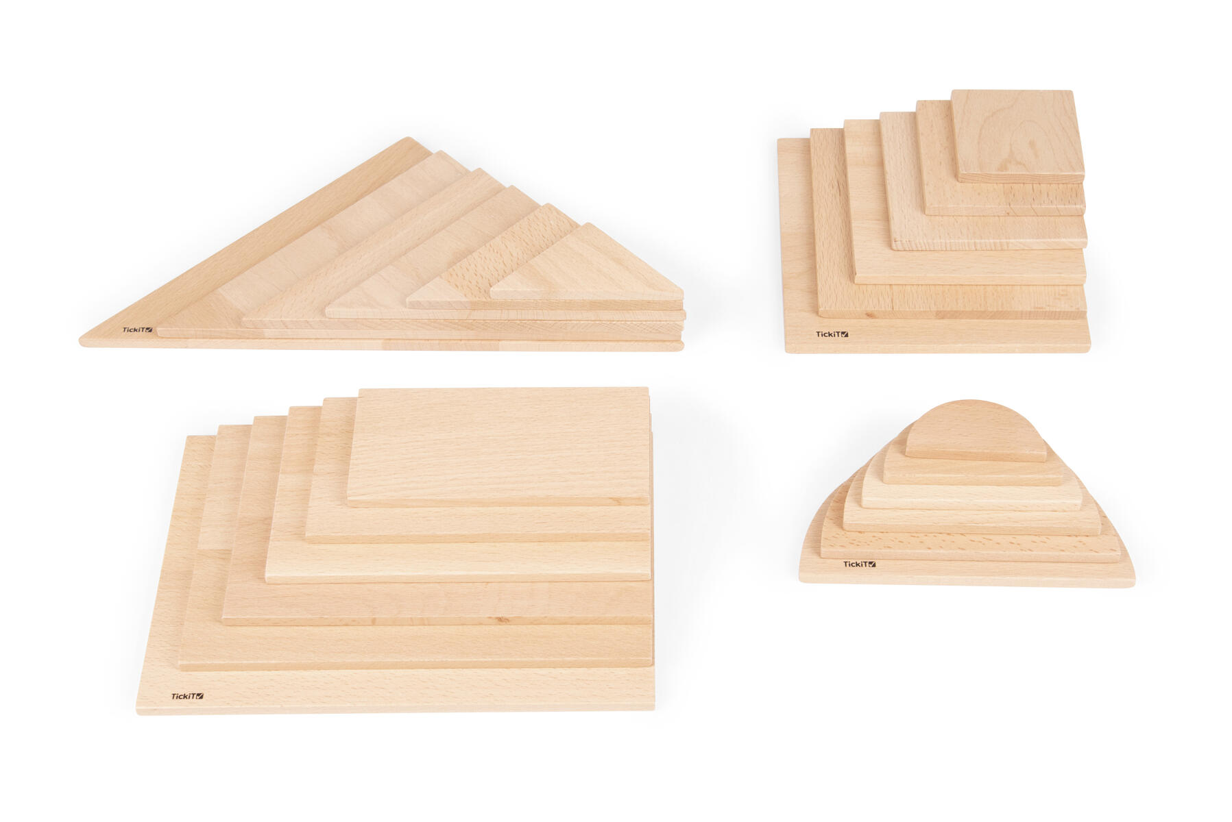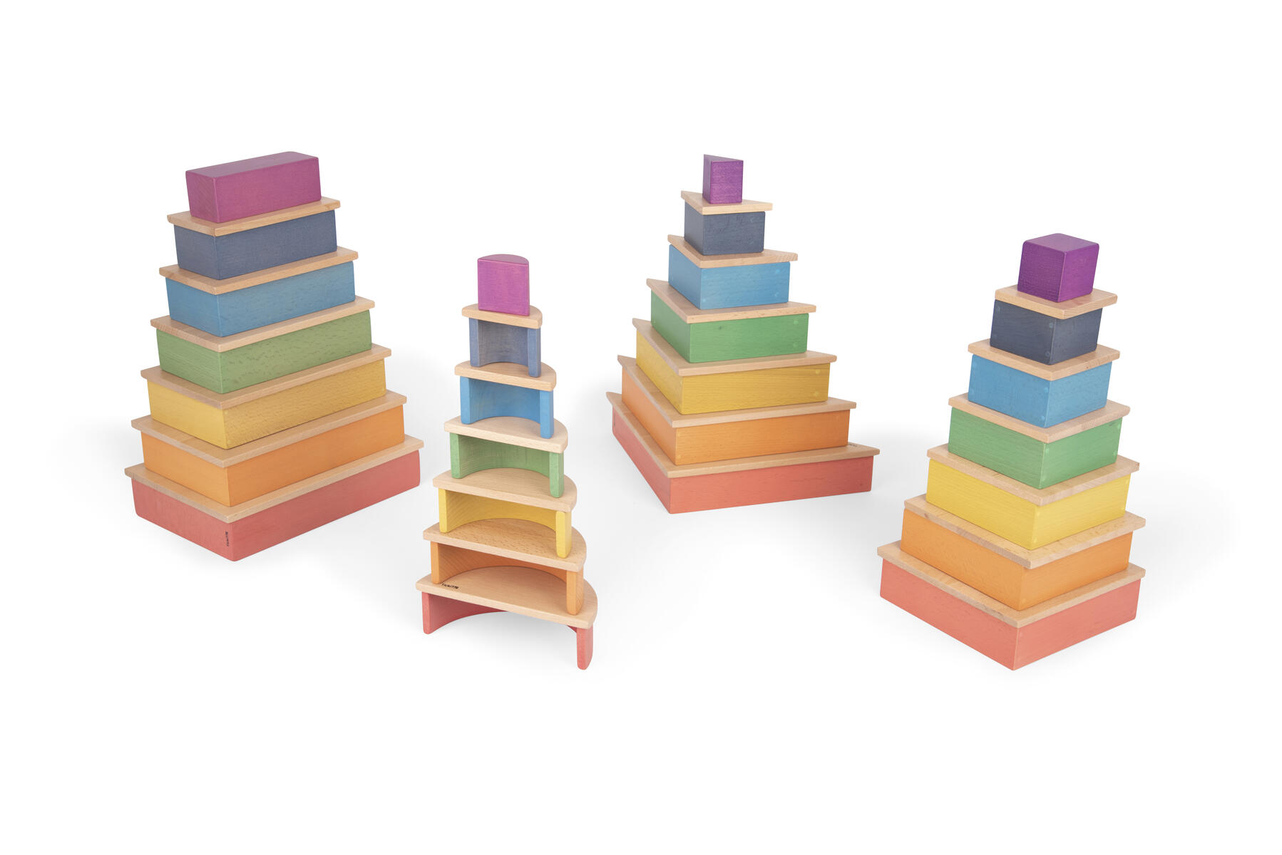 24 delar. Naturliga paneler i fyra former som ger en förlängning till regnbågsarkitekturseten. Bygg längre och bredare, eller lägg lock och baser till formerna för sortering och gruppering. Av bokträ. PVC-fri. Från 1 år.