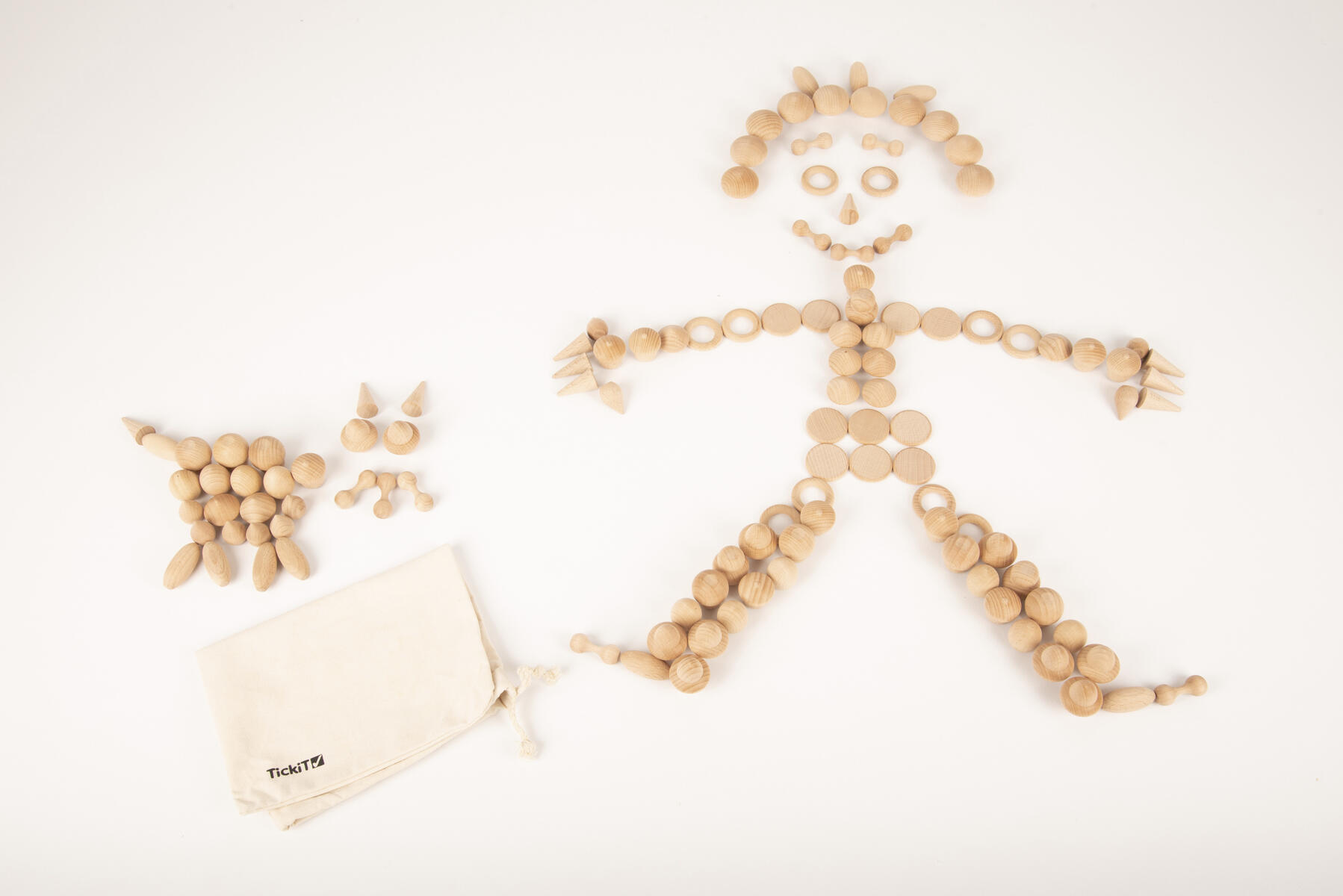 70 delar. Stor materialsats med figurer i naturträ. Delar som kan användas till sortering, i känselpåsar och självklart att bygga med. 10 träringar 48 mm, 10 träringar 70 mm, 6 klossar 40 mm, 10 äggkoppar 63 mm, 10 trådrullar, 10 kulor 50 mm, 3 skålar ø 70 mm, 3 skålar ø 92 mm, 1 ringhållare, 5 bomullspåsar 38x42 cm och lärarhandledning. Av FSC-märkt trä. PVC-fri. Från 10 månader.