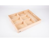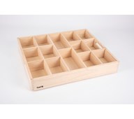 Sorteringsbricka i massivt bokträ, uppdelad i 14 sektioner. Brickan kan placeras plant eller stå upprätt. Perfekt för att sortera eller klassificera mindre föremål efter färg och form. Mått: 50x43x7 cm. Av FSC-märkt trä. PVC-fri. Från 10 månader.