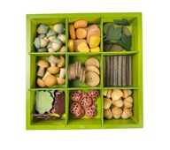 120 delar. En uppsättning vackra släta ofärgade träformer inspirerade av naturen. Öva på att räkna, sortera och designa mönster eller använd som ett komplement i byggleken. Innehåll: 10 st x 12 olika former. Setet inkluderar en bomullspåse för enkel förvaring. Storlek per form: 35-40 mm. Av FSC-märkt trä. PVC-fri. Från 3 år.