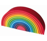 12 delar. Byggset i trä där bitarna tillsammans skapar en vacker regnbåge. Bitarna kan användas som t.ex. tunnlar och broar tillsammans med andra typer av klossar. Yngre barn kan stapla och sortera klossarna. Målade med giftfria, vattenbaserade färger. PVC-fri. Från 0 år.
