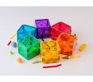 130 delar. Ett stort set med fascinerande magnetiska byggklossar av trä. Uppmuntrar till kreativitet, logiskt tänkande, fantasi och experiment. Innehåller hjul, magnetiska klossar och stavar i olika former och färger. Betsade med vattenbaserad, giftfri färg. Levereras i en förvaringsbox av kartong. Rengöres med fuktig trasa. PVC-fri. Från 3 år.