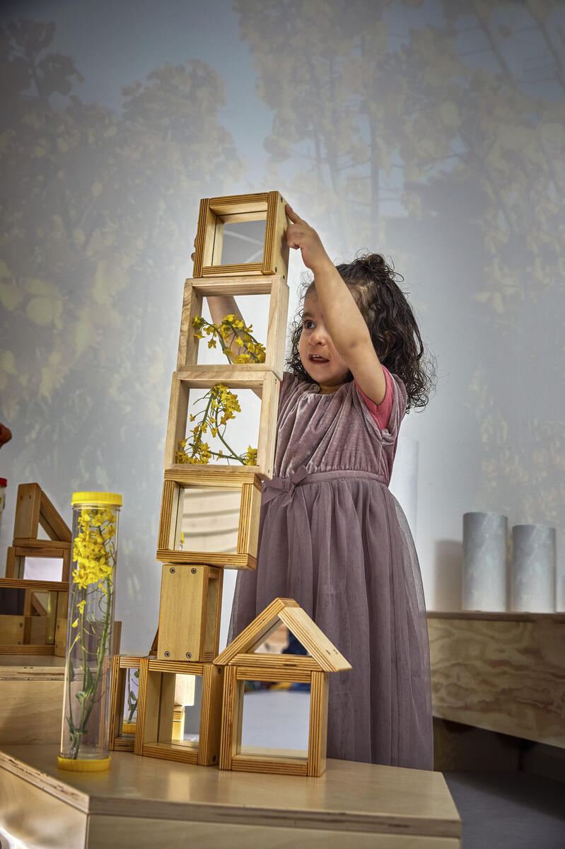 Klossar som kan öppnas och fyllas med mindre föremål för att ge olika sensoriska effekter. Klossarna har en rejäl ram av trä och fönster av akrylplast. Genom att lossa 2 skruvar kan man enkelt byta innehåll i klossen. Mått på största klossen 14x14 cm. PVC-fri. Från 3 år.