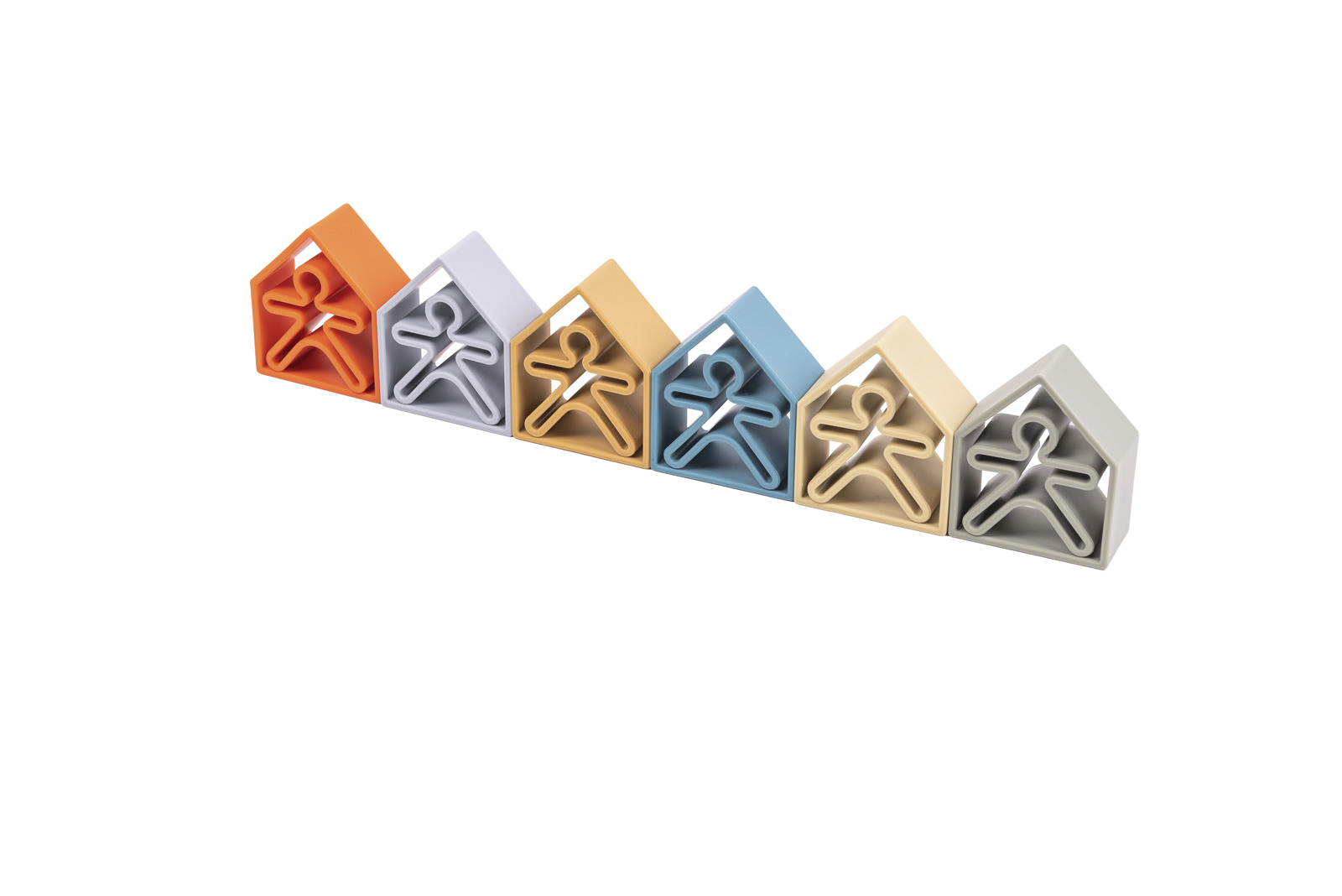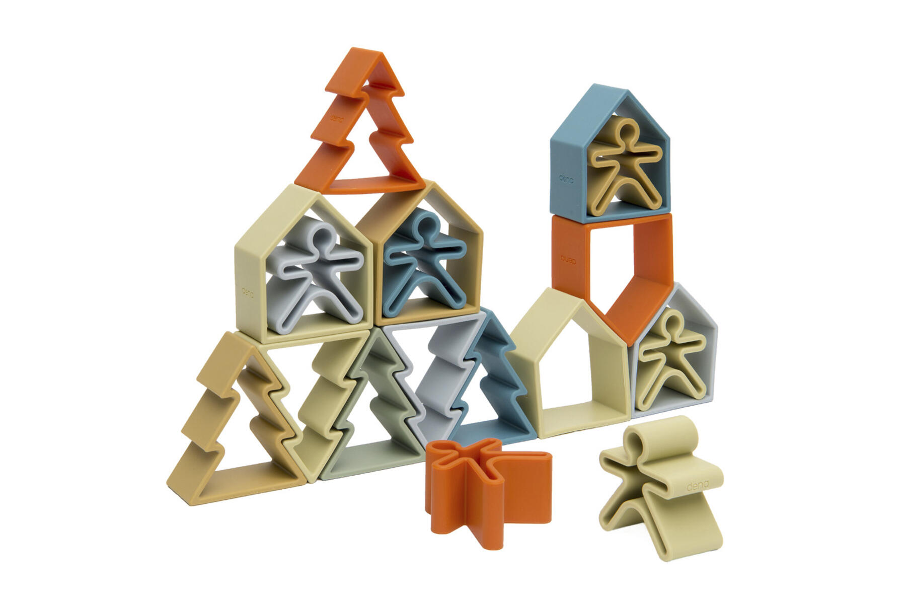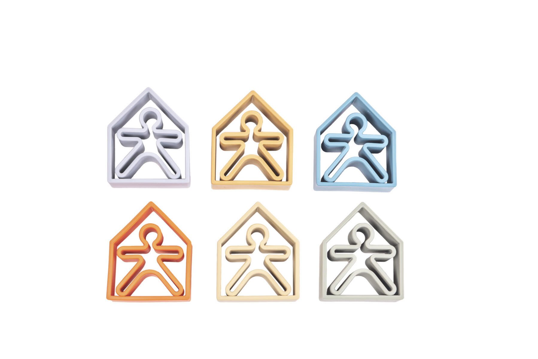 12 st/fp. Ett set med 6 figurer och 6 hus i silikonmaterial. Setet har många användningsområden: små barn kan bita i figurerna, senare kan de staplas eller användas som bakform. Tål diskmaskin, mikrovågsugn och vanlig ugn upp till 230 °C. Kan frysas till -50 °C. Höjd per figur 7 cm. PVC-fri. Från 0 år.