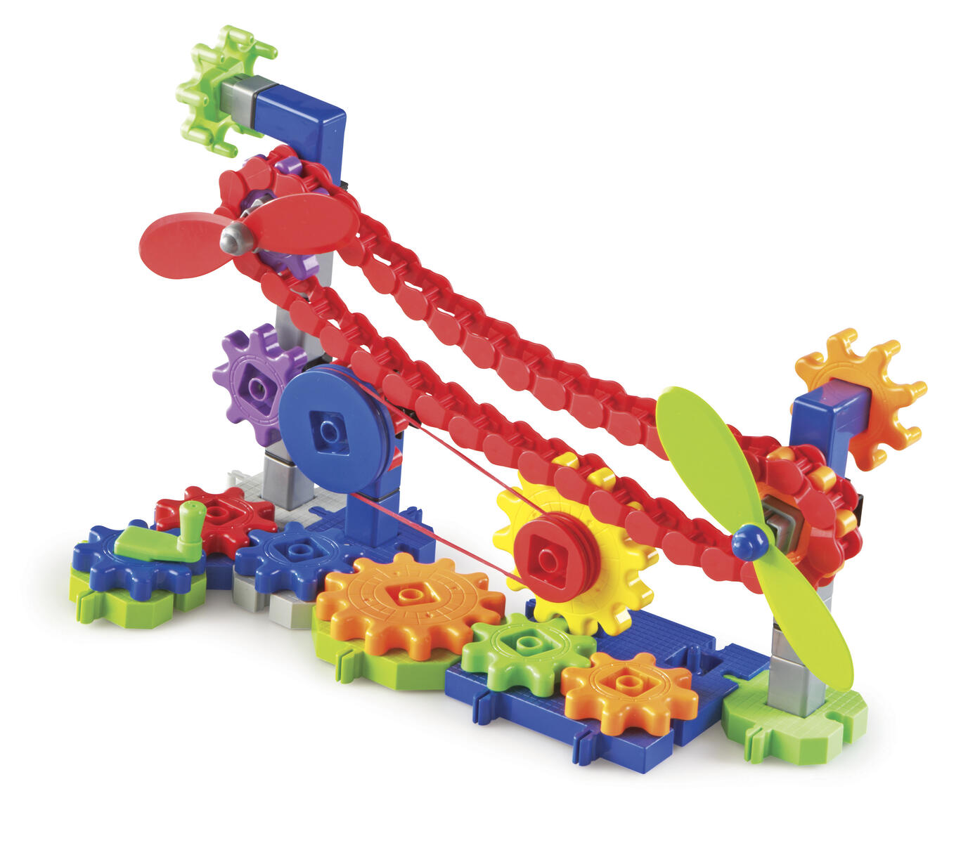 Bygglåda med kedja, kugghjul, remskivor och mycket mer. Designa din egen helikopterpropeller eller bygg en kran som kan vridas med hjälp av en spak. Setet uppmuntrar till STEM-färdigheter som nyfikenhet i kombination med kritiskt tänkande. Barnen får lära sig mer om fordon och maskiner i rörelse. Instruktionsblad medföljer på tänkbara konstruktioner men det är naturligtvis fritt fram att skapa sina egna verk. Innehåll: 116 byggbitar, instruktioner. PVC-fri. Passar för barn mellan 5 och 9 år.