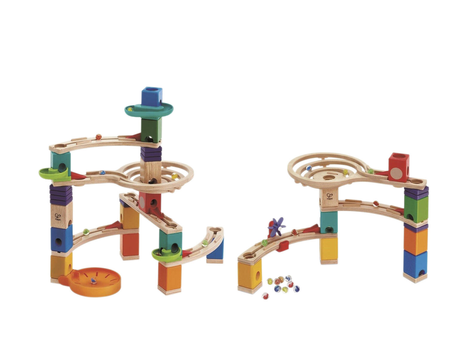 152 delar. Kombinationsmöjligheterna är oändliga med denna kulbana som barnen kan bygga efter egen fantasi. Konstruerandet främjar kreativitet och logiskt tänkande. En kombination av både spiraler och rännor i olika former som gör att olika banor kan byggas med samma delar. Instruktioner medföljer. Av trä. PVC-fri. Från 4 år.