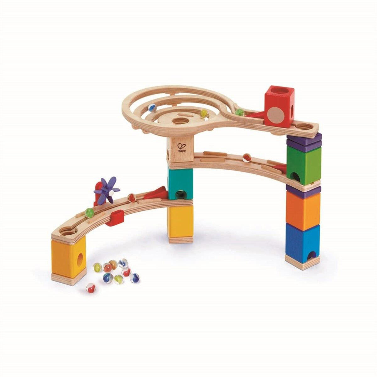 152 delar. Kombinationsmöjligheterna är oändliga med denna kulbana som barnen kan bygga efter egen fantasi. Konstruerandet främjar kreativitet och logiskt tänkande. En kombination av både spiraler och rännor i olika former som gör att olika banor kan byggas med samma delar. Instruktioner medföljer. Av trä. PVC-fri. Från 4 år.