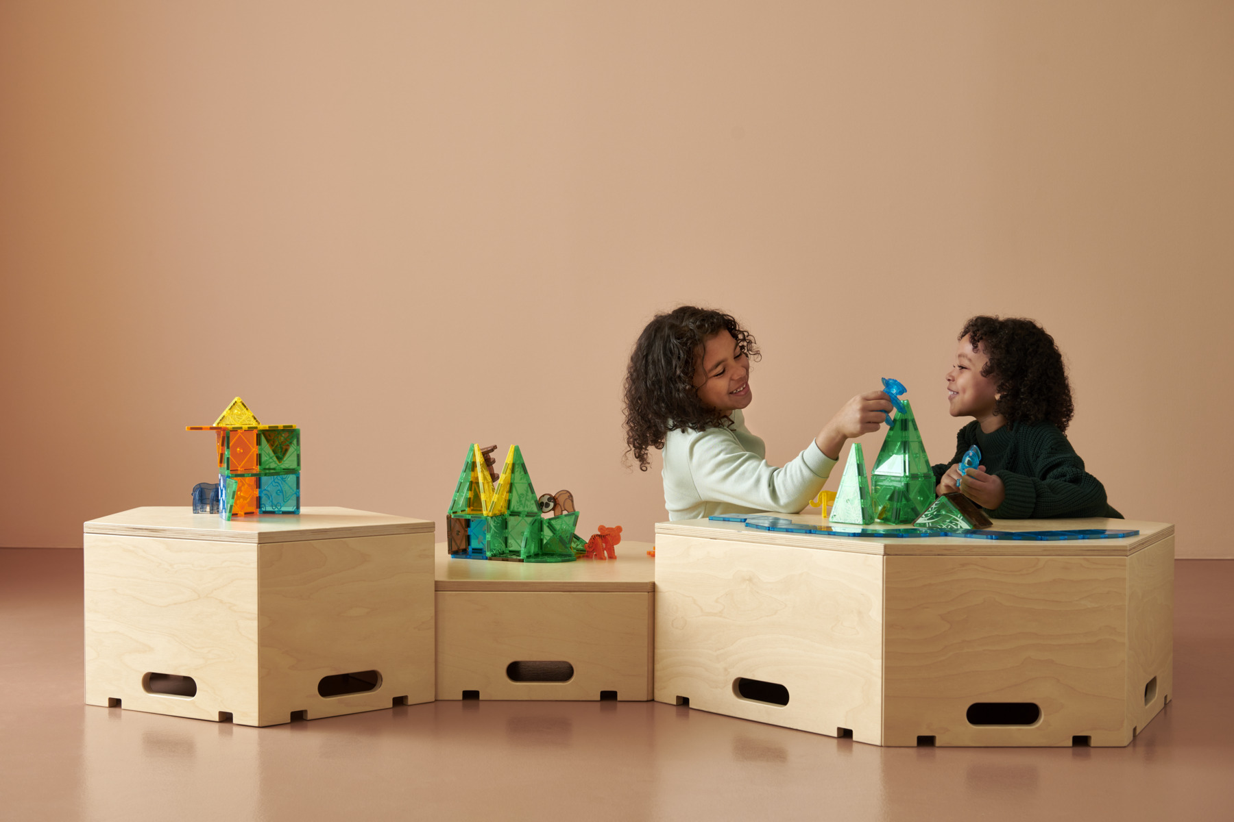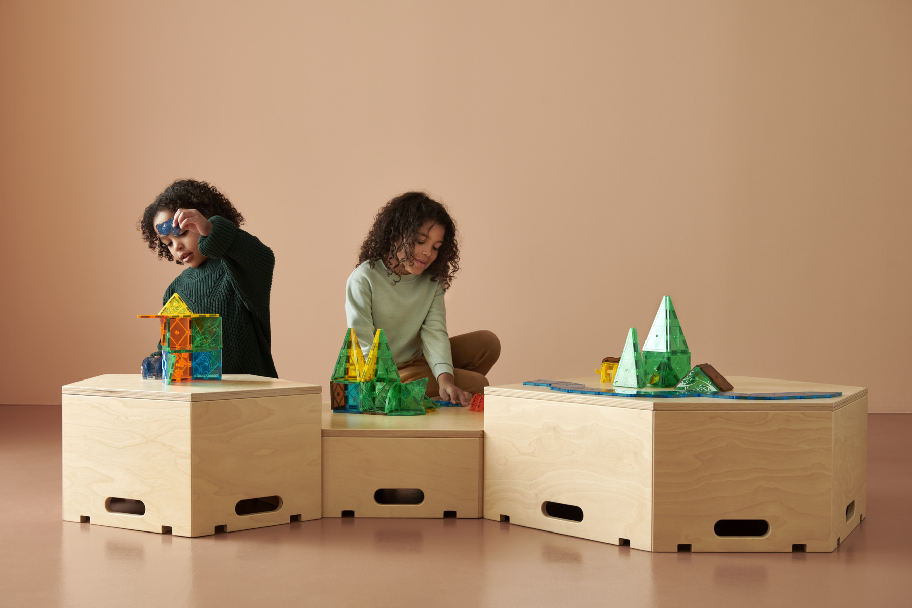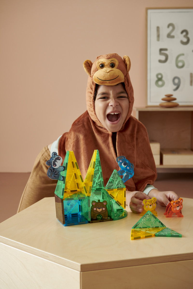 38 delar. Magnetiska byggplattor med djungeltema som främjar lek, kreativitet och lustfyllt lärande. Tränar finmotorik och rumsuppfattning samt utvecklar förmågan att känna igen symmetri. Setet inkluderar en koala, tiger, tvättbjörn, björn och leopard med rörliga leder. Byggbeskrivning medföljer. Av ABS. PVC-fri. Från 3 år.