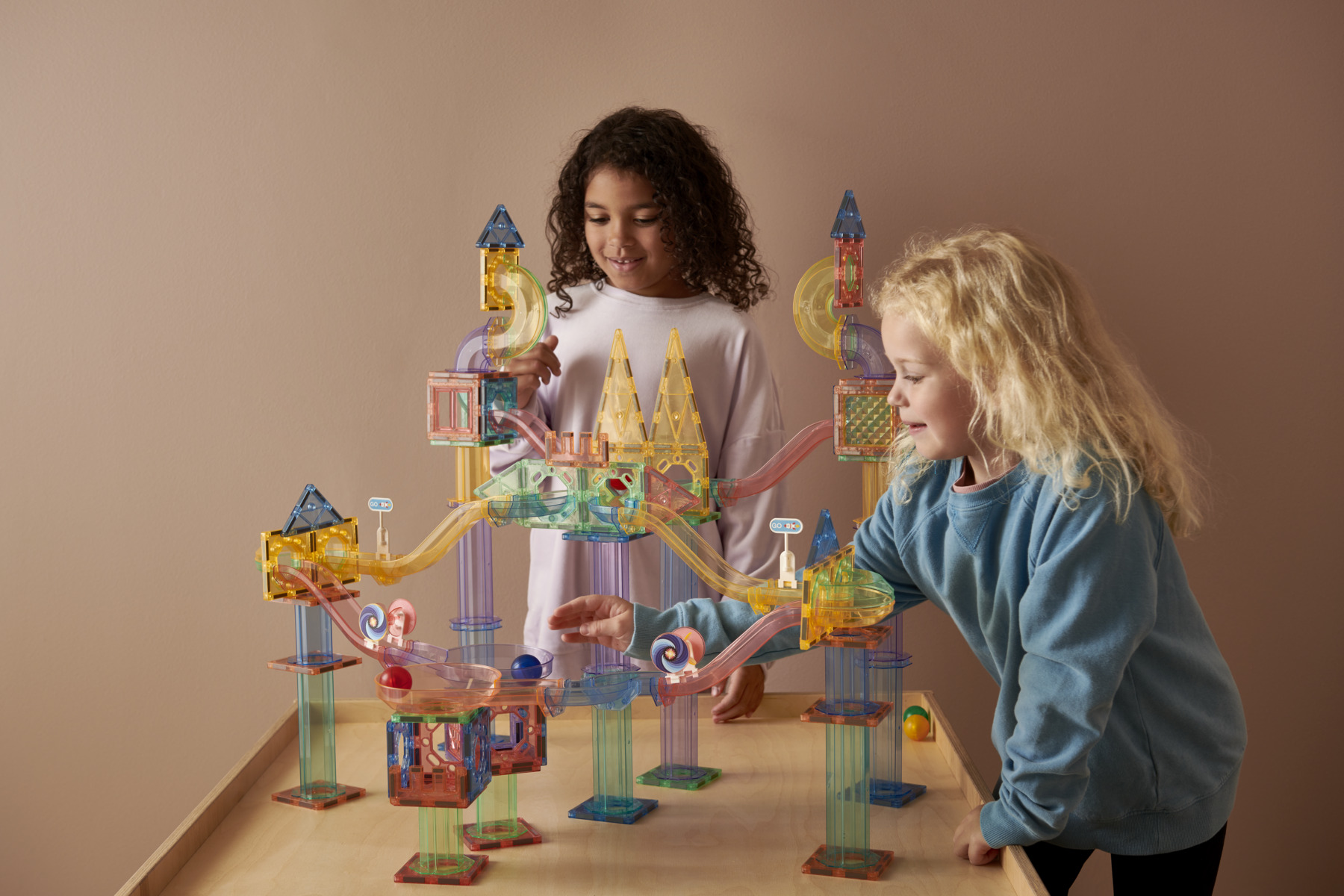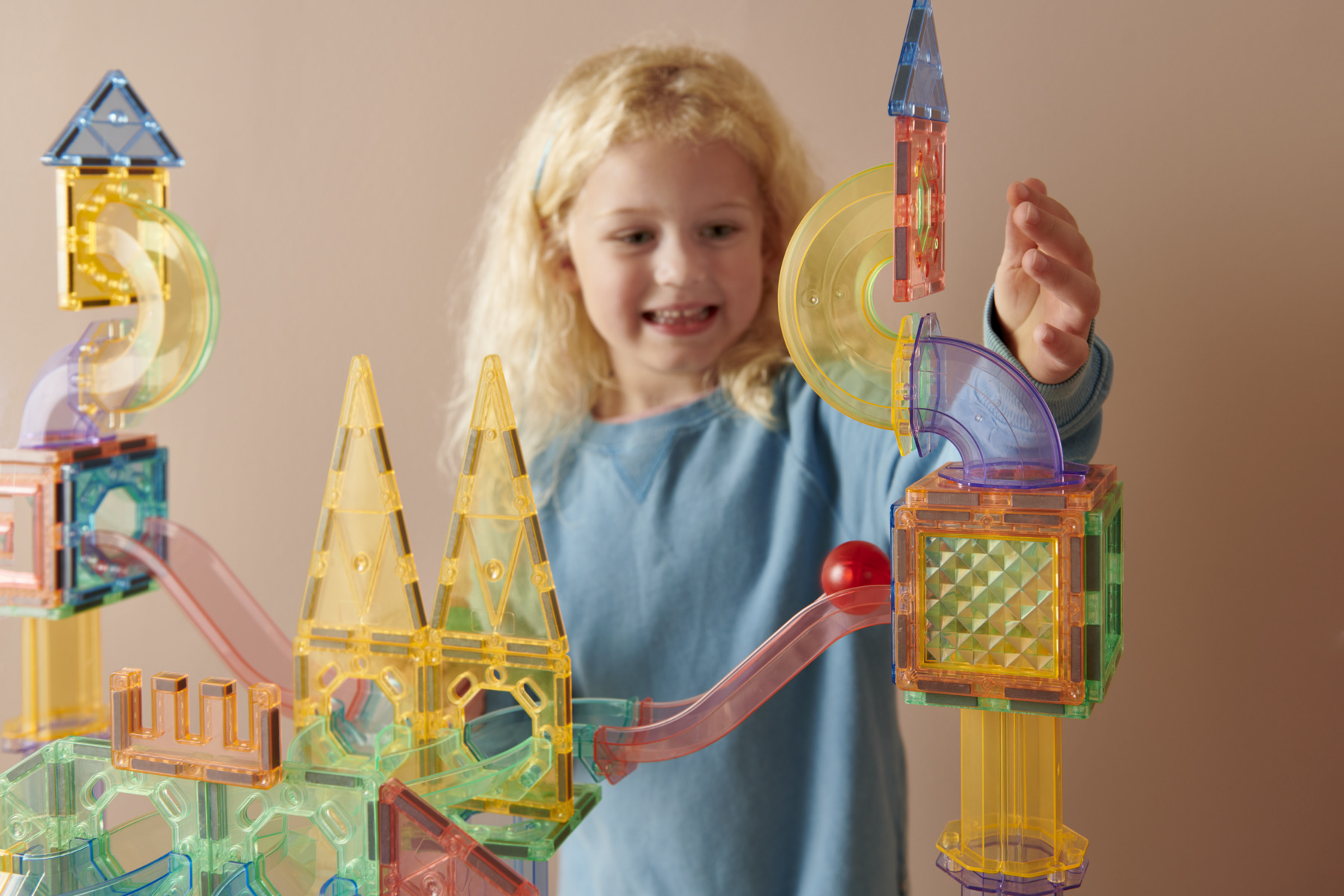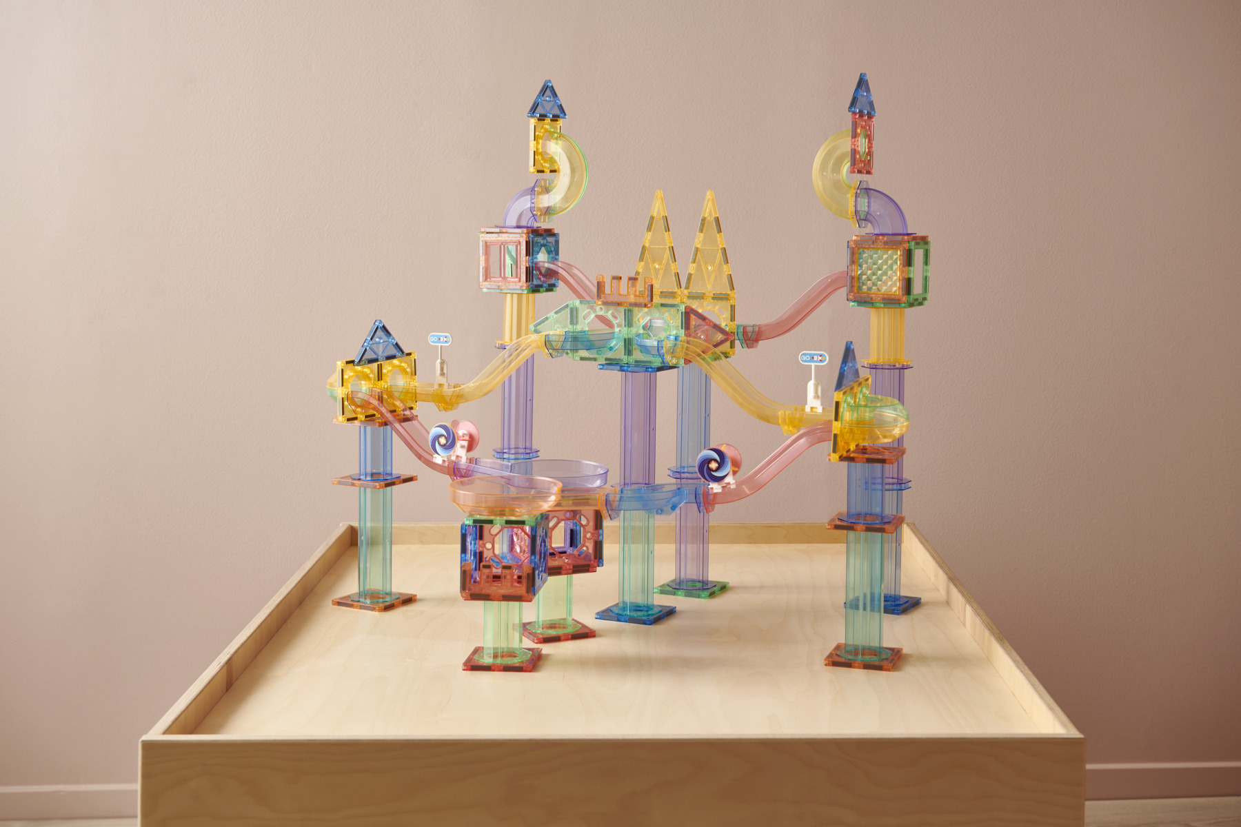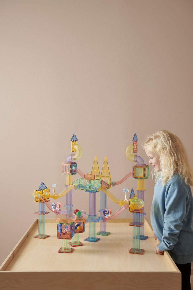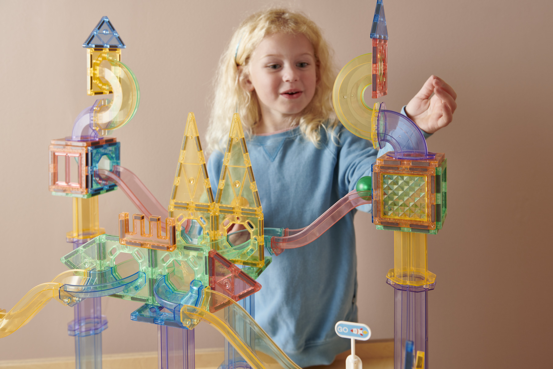 189 delar. STEM-utvecklande kulbana som växer med barnen. När barnen blir äldre utvecklas deras konstuktionsförmåga och de kan bygga allt mer avancerade banor. Bygg en stor eller flera mindre banor. Innehåller transparent färgade byggplattor i olika former, samt små tillbehör som kan läggas till längs kulans väg. 6 st kulor ingår. Byggbeskrivning medföljer. Av ABS. PVC-fri. Från 3 år.