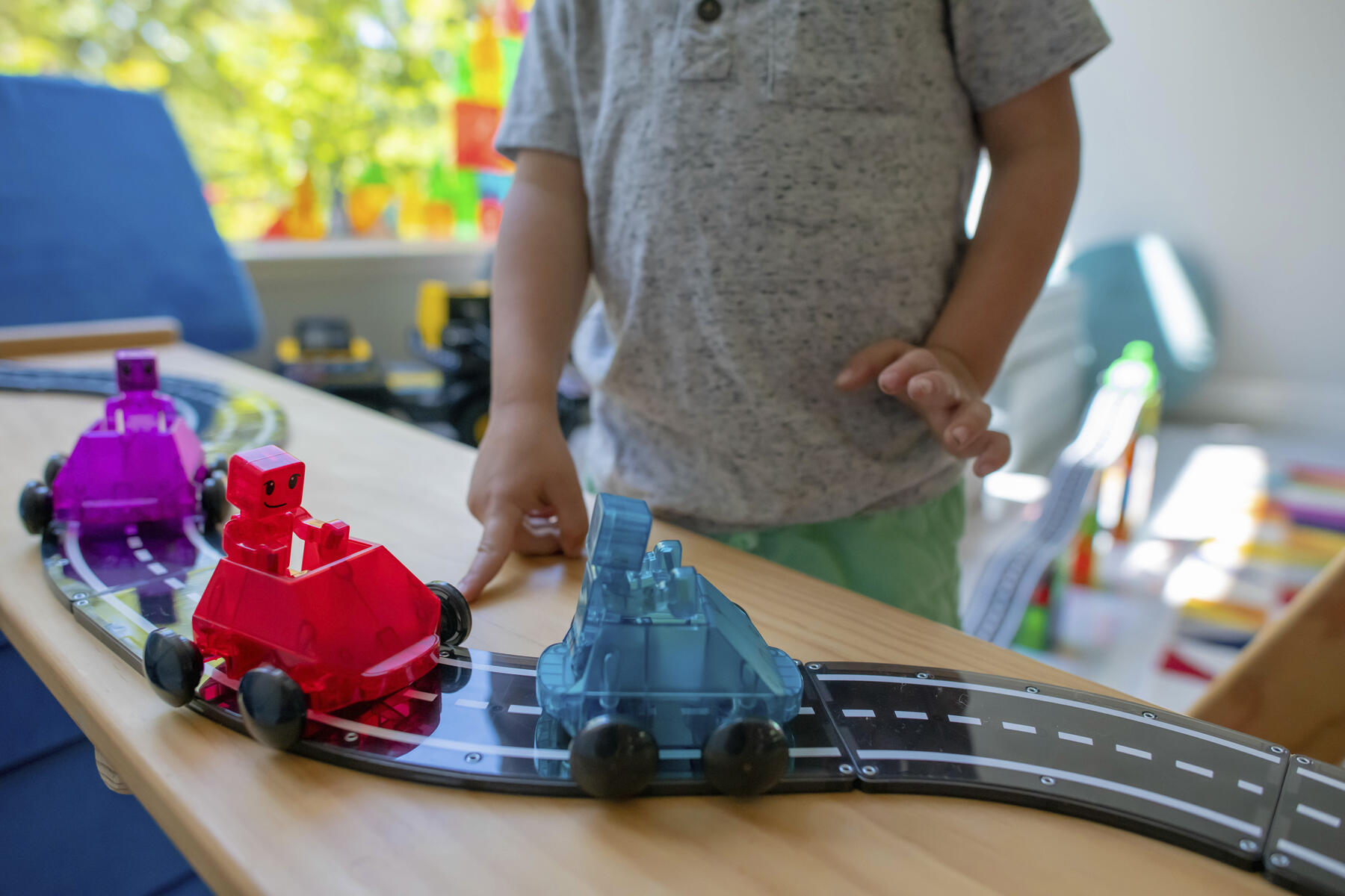 58 delar. Var med om ett helt magnetiskt racingäventyr utformat för små händer och stor fantasi. Inspirerar barnens kreativitet och bygger upp deras motoriska färdigheter med ramper, vägar och figurer. I detta set ingår extra vägbanor och racerbilar. Fullt kompatibel med andra set från Magna-Tiles. Av ABS. Från 3 år.