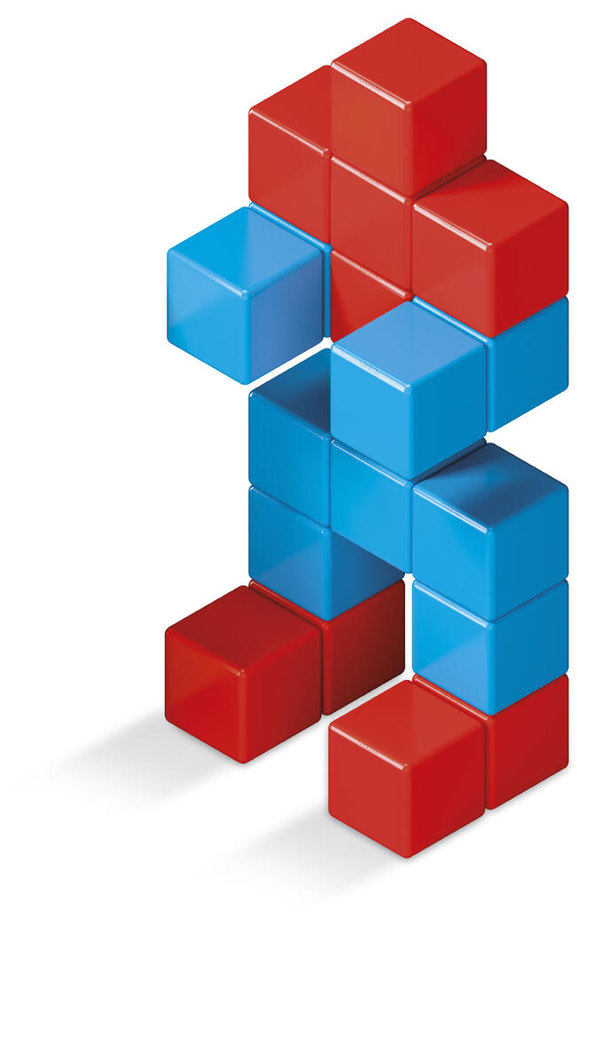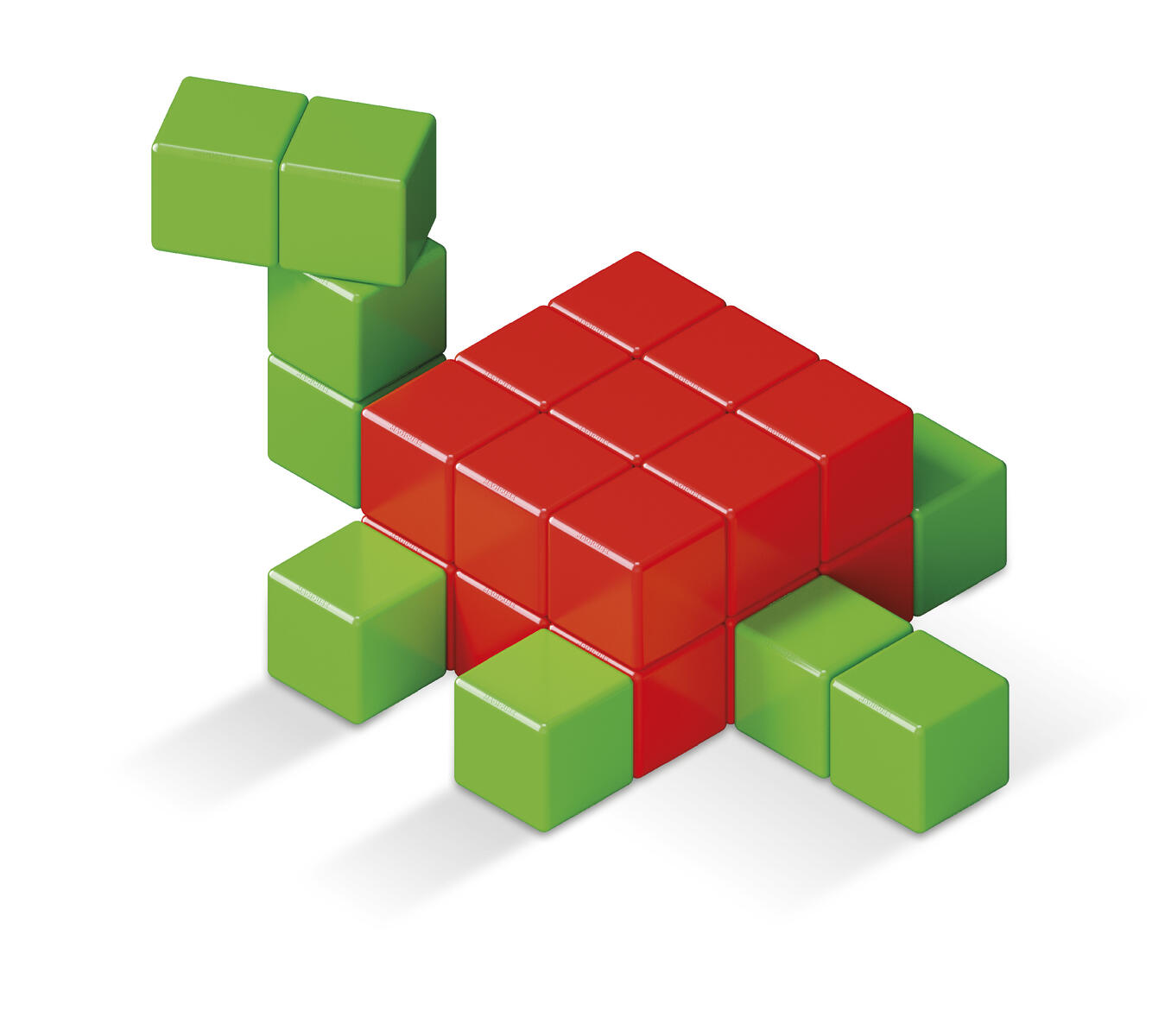 64 delar. Magnetiska kuber som kan vridas och vändas och fäster på alla sidor. Genom leken utvecklar barnen olika förmågor som t.ex. bygga i 3D, finmotoriska färdigheter, matematik och rumslig medvetenhet. Mått 3,3x3,3 cm. Av ABS. PVC-fri. Från 1 år.