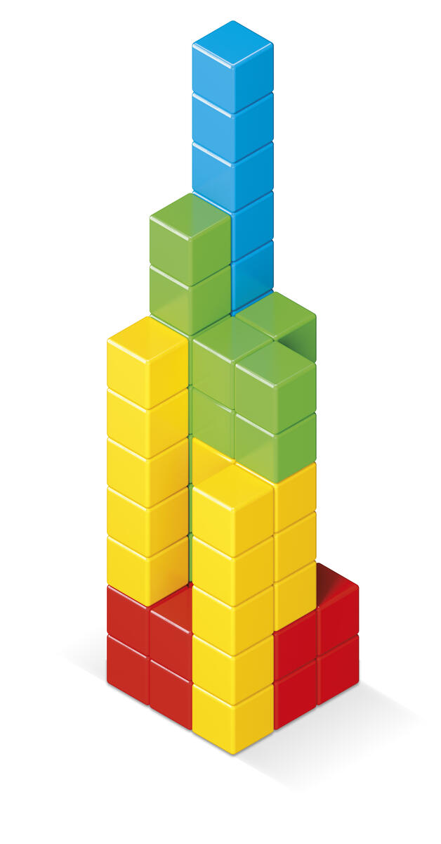 32 delar. Greppvänliga byggklossar för yngre barn. Tack vare magnetism kan kuberna fästas på alla sidor. Innehåller färgglada klossar i 4 olika former för obegränsade konstruktioner. Tillverkade av 100 % återvunnen PP och ABS. PVC-fri. Från 1 år.