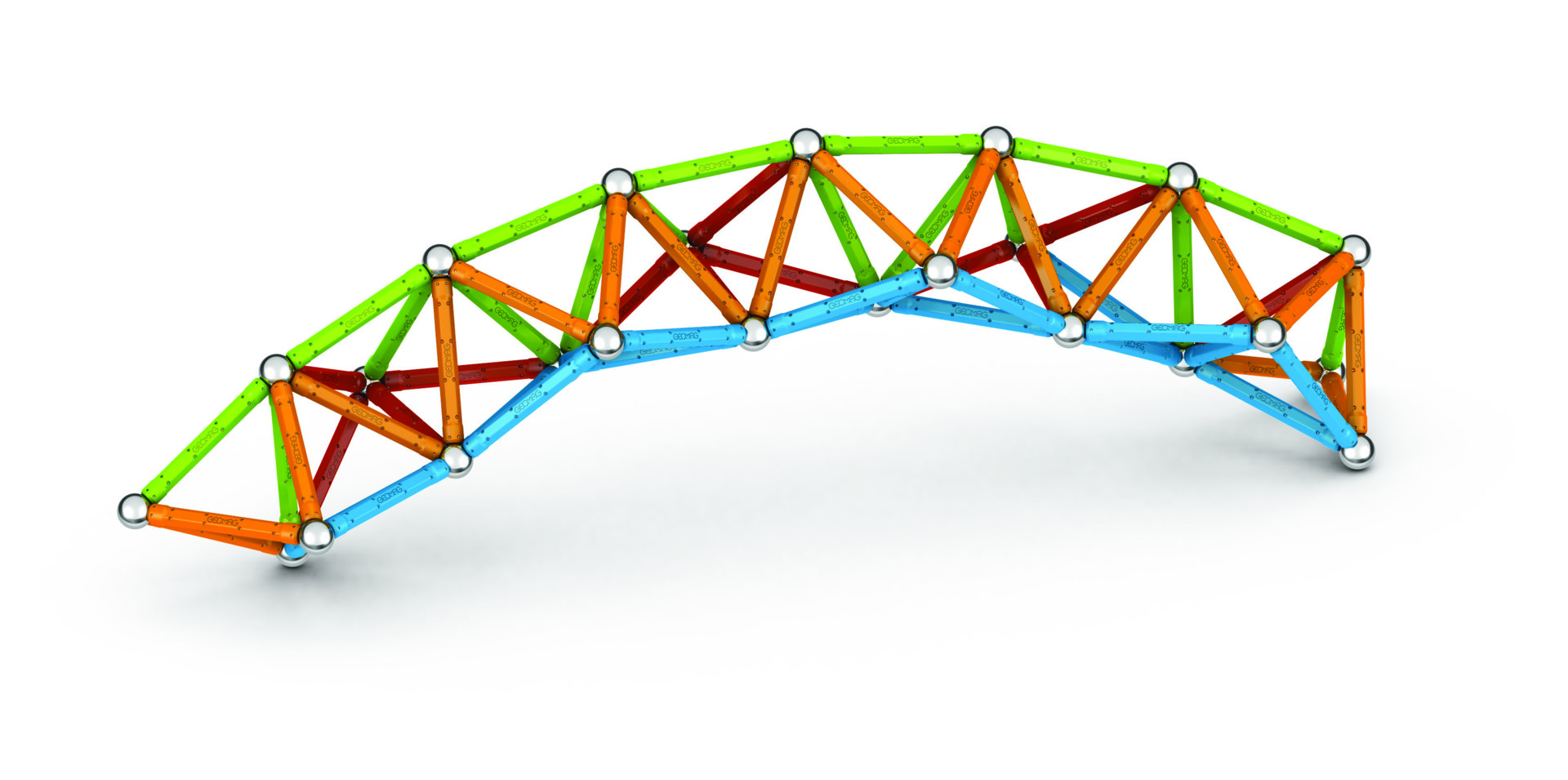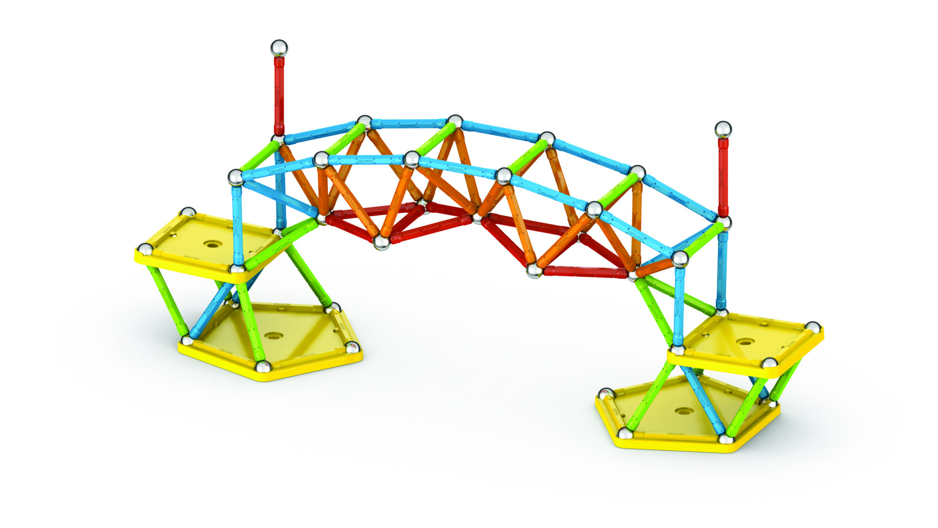 60 delar. Klassiskt magnetiskt konstruktionssystem med magnetiska stavar, paneler och baser gjorda av 100 % återvunnen PP- och ABS-plast. Geomags färgglada magnetstavar kan sättas ihop till en mängd olika strukturer och former. Innehåller 28 magnetstavar, 28 kulor, 2 kvadratiska paneler och 2 femhörningar. PVC-fri. Från 5 år.