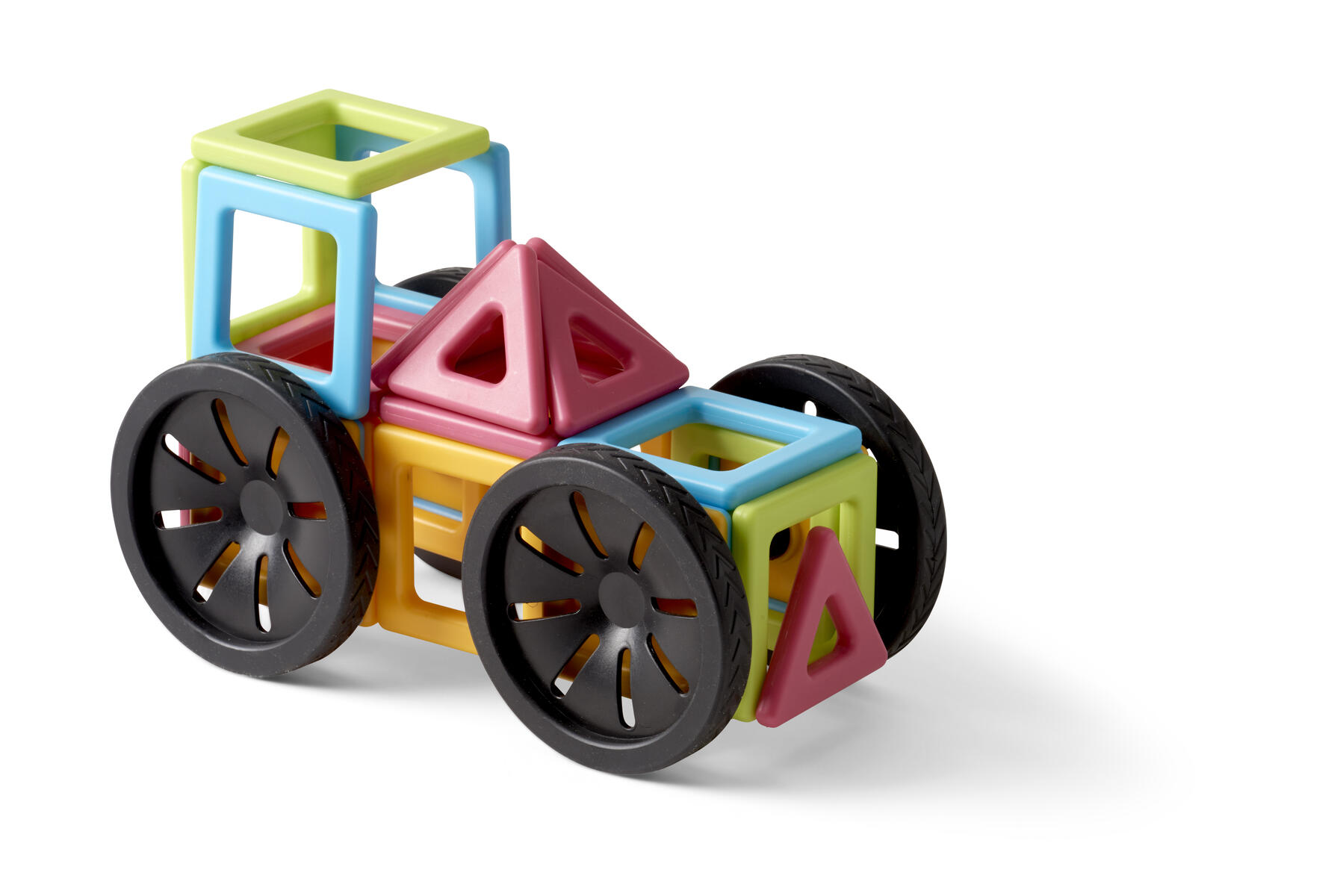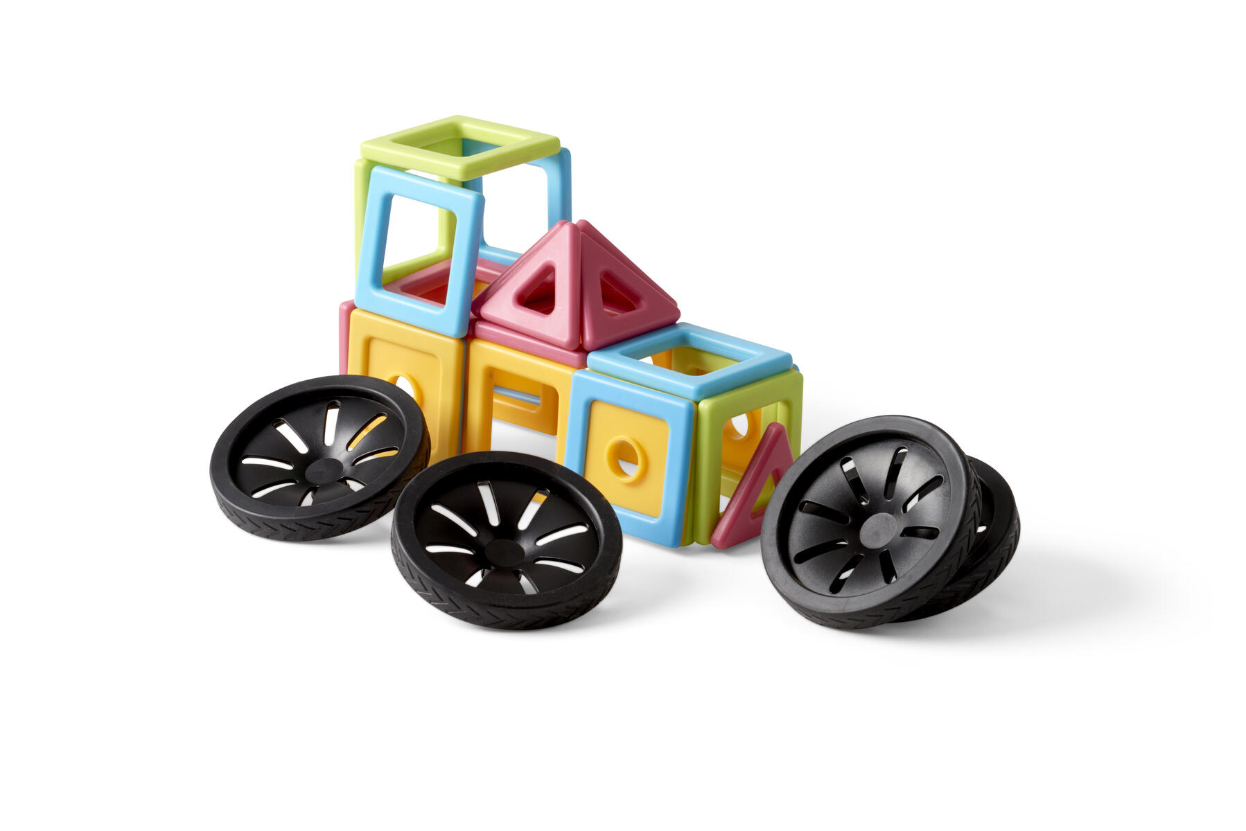 4 st/fp. Med dessa hjul kan du komplettera Magnet klasset, artikelnummer 53201. Roligt att använda när man t.ex. bygger olika slags fordon. Nav ingår. PVC-fri. Från 3 år.