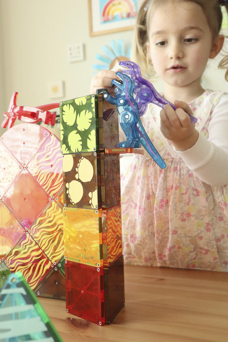 95 delar. Bygg upp en historisk värld med detta gigantiska set med dinosaurier från Magna-Tiles. Innehåller både former och dinosaurier. Den släta ytan på bitarna är designad för att motstå fläckar och repor. Av ABS. PVC-fri. Från 3 år.