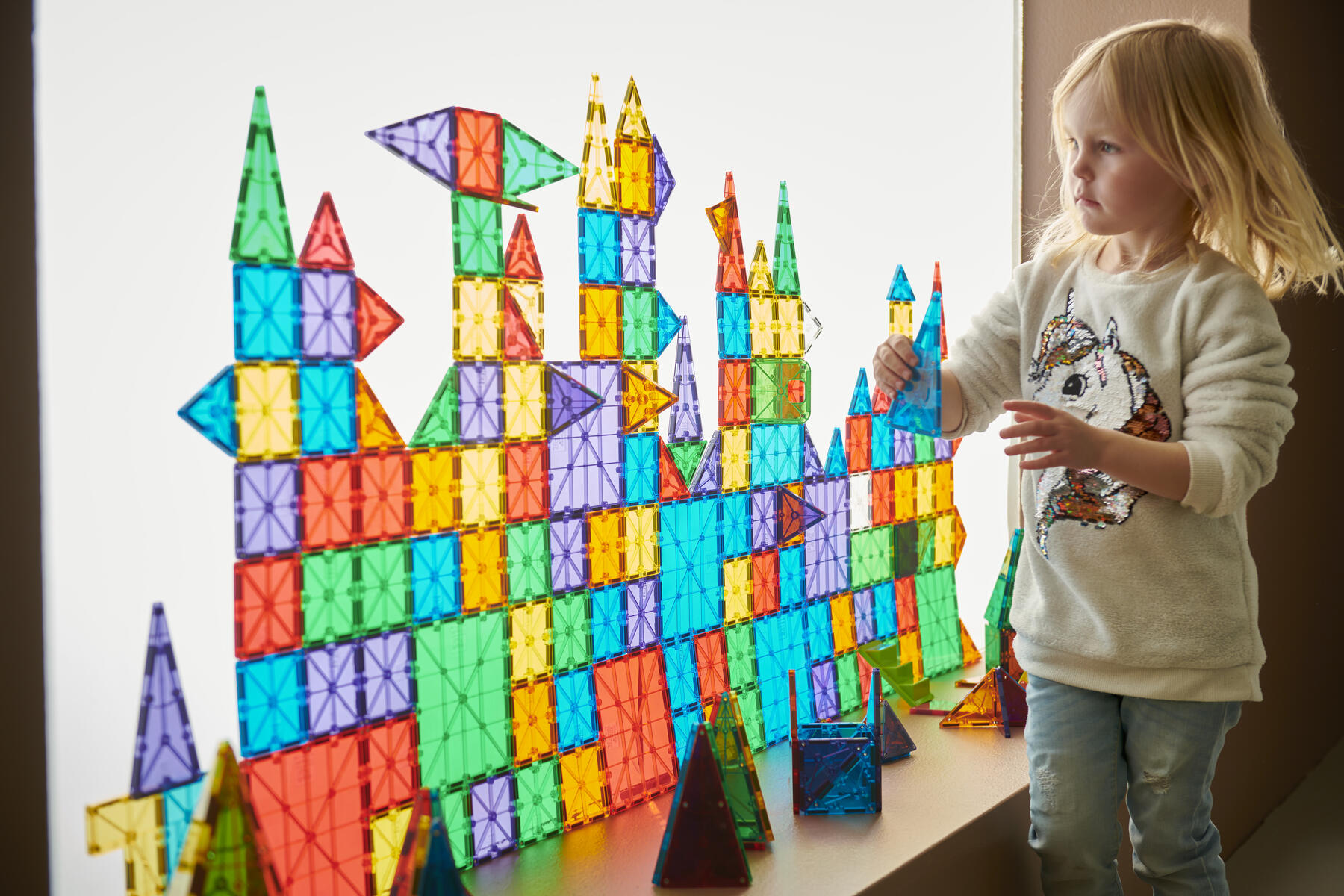 100 delar. Magna-Tiles är stora magnetiska byggplattor, som är riktigt roliga att bygga med. Stora och små, tre- och fyrkantiga transparenta färgade plattor som drar sig till varandra när barnen bygger. Innehåller tre olika trianglar och två olika kvadratiska former. Av ABS. PVC-fri. Från 3 år.