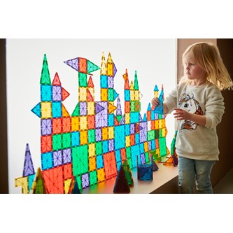 200 delar. Magna-Tiles är stora magnetiska byggplattor, som är riktigt roliga att bygga med. Stora och små, tre- och fyrkantiga transparenta färgade plattor som drar sig till varandra när barnen bygger. Innehåller tre olika trianglar och två olika kvadratiska former. Av ABS. PVC-fri. Från 3 år.