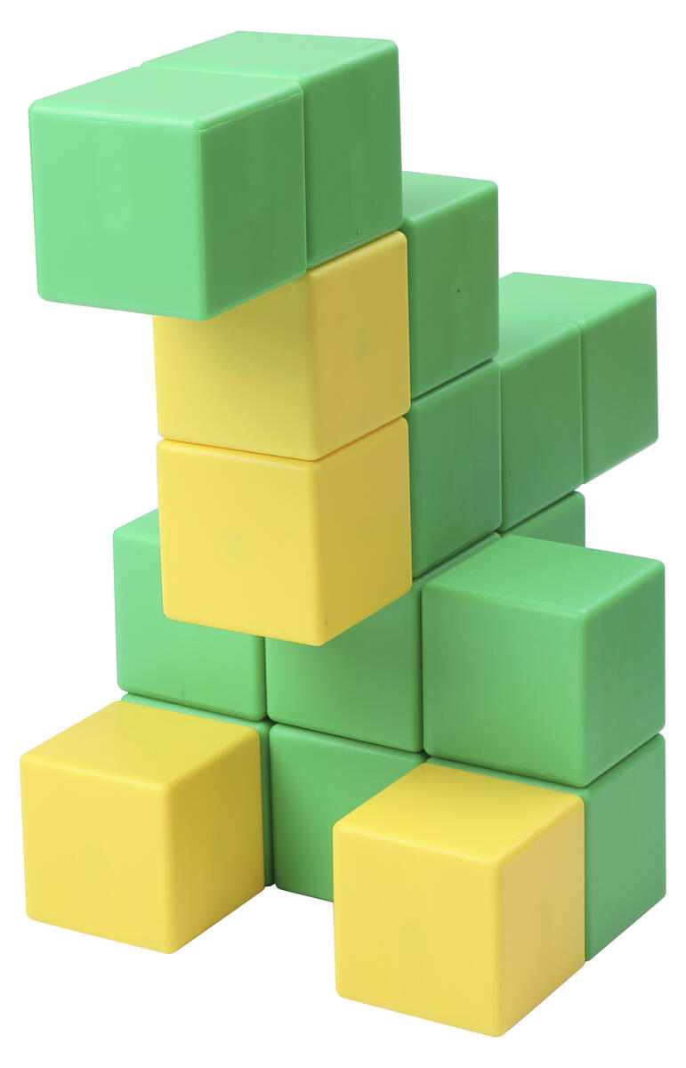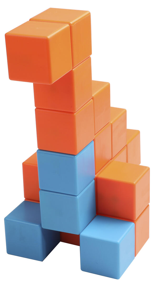64 delar. Magnetiska kuber som kan vridas och vändas och fäster på alla sidor. Genom leken utvecklar barnen olika förmågor som t.ex. bygga i 3D, finmotoriska färdigheter, matematik och rumslig medvetenhet. Mått 3,3x3,3 cm. Av ABS. PVC-fri. Från 1 år.