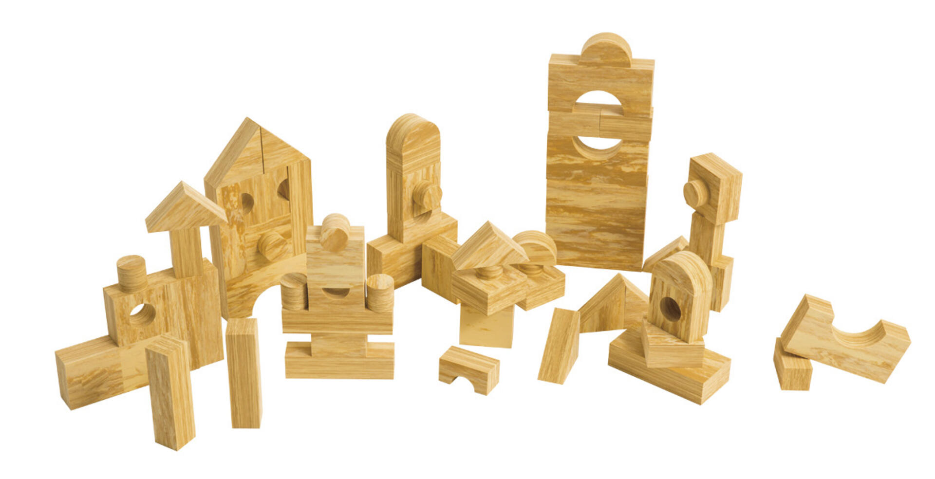 224 delar. Mjuka träliknande klossar i olika former. De är lätta att bygga med och passar lika bra för både ensam- och grupplekar. Barnen övar sin förmåga att konstruera och utvecklar sin fantasi. Av EVA. PVC-fri. Från 2 år.