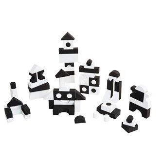 40 delar. Ett set med svartvita klossar i olika former för fantasifullt byggande. Av EVA - ett mjukt, tyst och behagligt material. Mått: 8-16 cm. Av EVA. PVC-fri. Från 1 år.