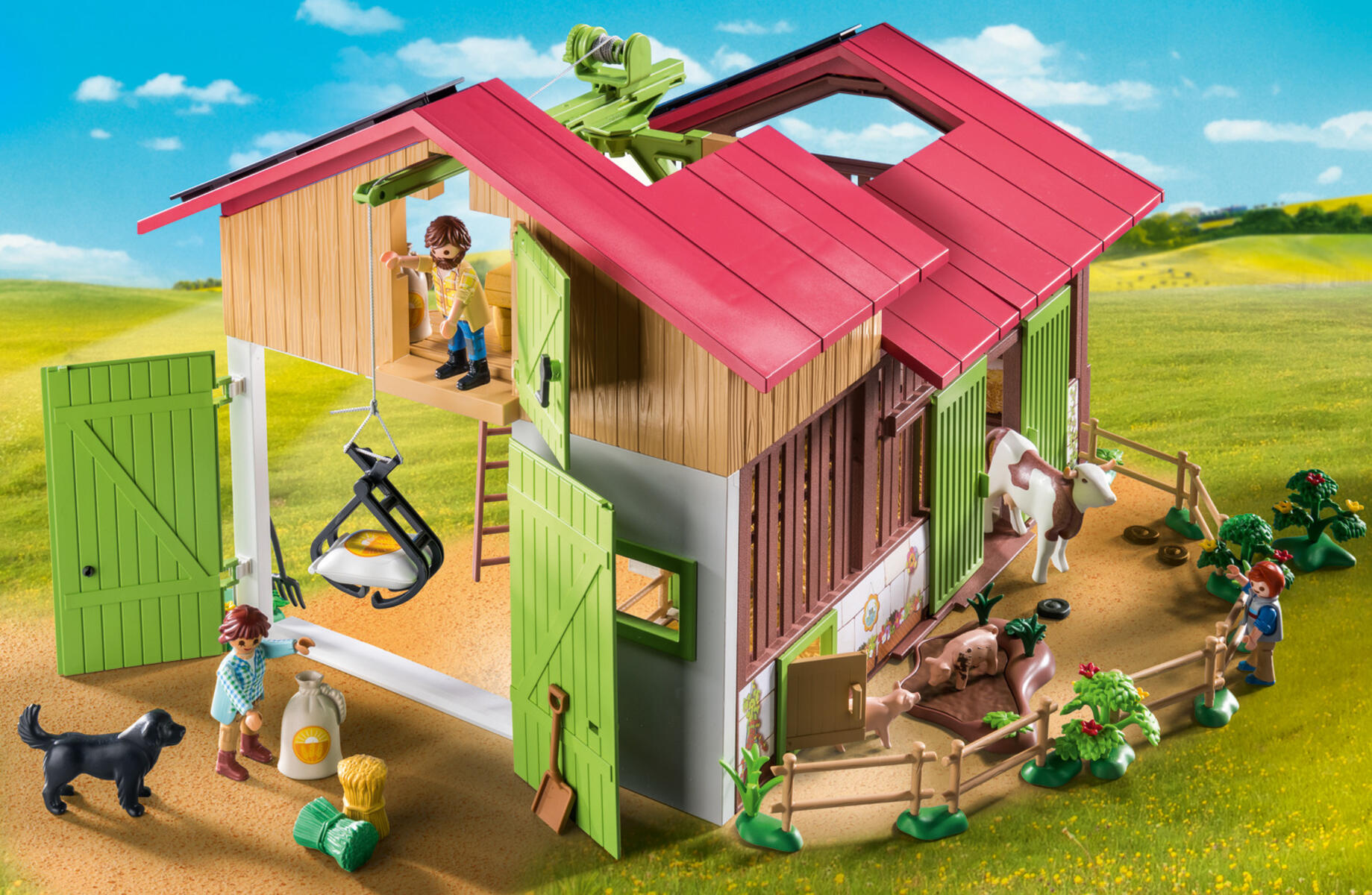 182 delar. På den stora bondgården finns en utfällbar och roterbar lastkran, en modernt utrustad ladugård till korna och en svinstia med värmelampa för griskultingar. Den stora silon kan öppnas och tömmas. Djur, figurer och flera andra tillbehör ingår. Mått: 46x50x29 cm. Av ABS. PVC-fri. Från 4 år.