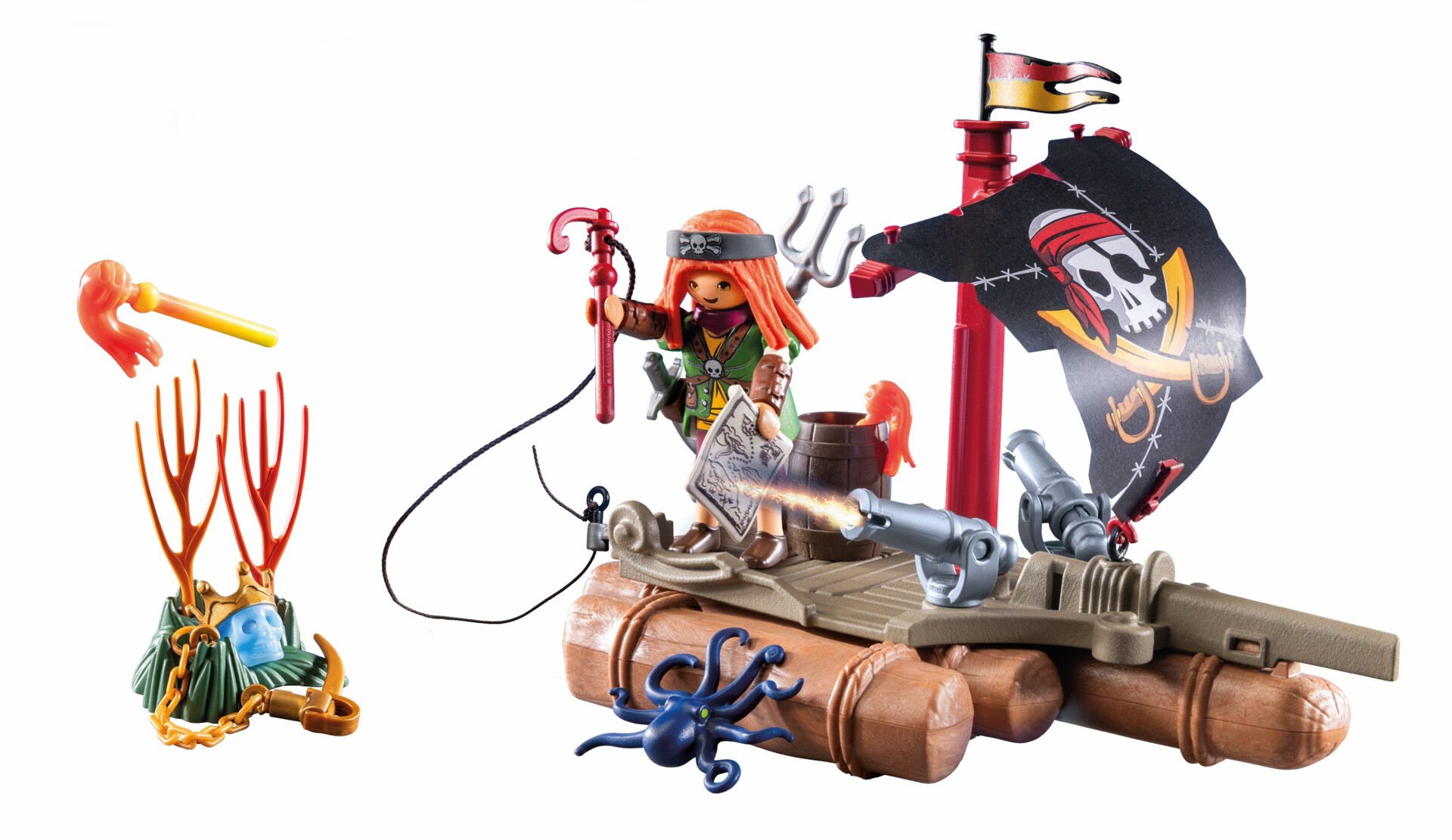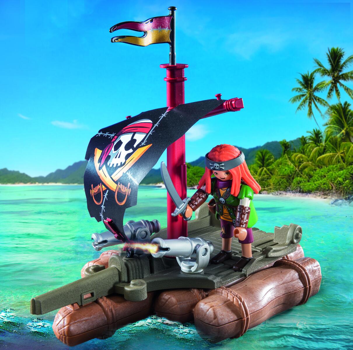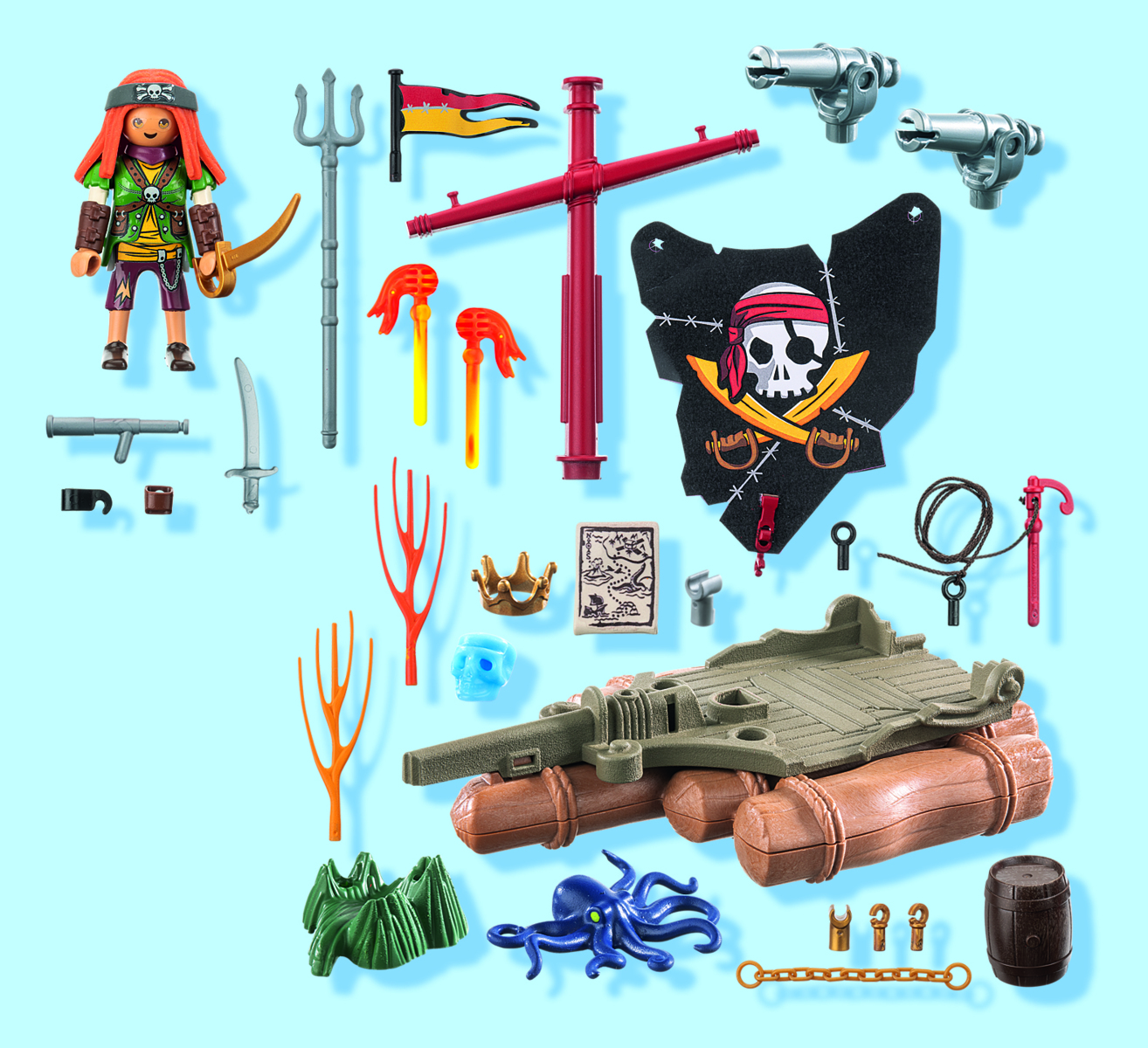 41 delar/fp. Följ med piraten som försvarar sin skatt mot attackerande fiender. Leksetet innehåller en piratfigur, en flotte med mast, segel och flagga, samt två kanoner. Av ABS. PVC-fri. Från 4 år.