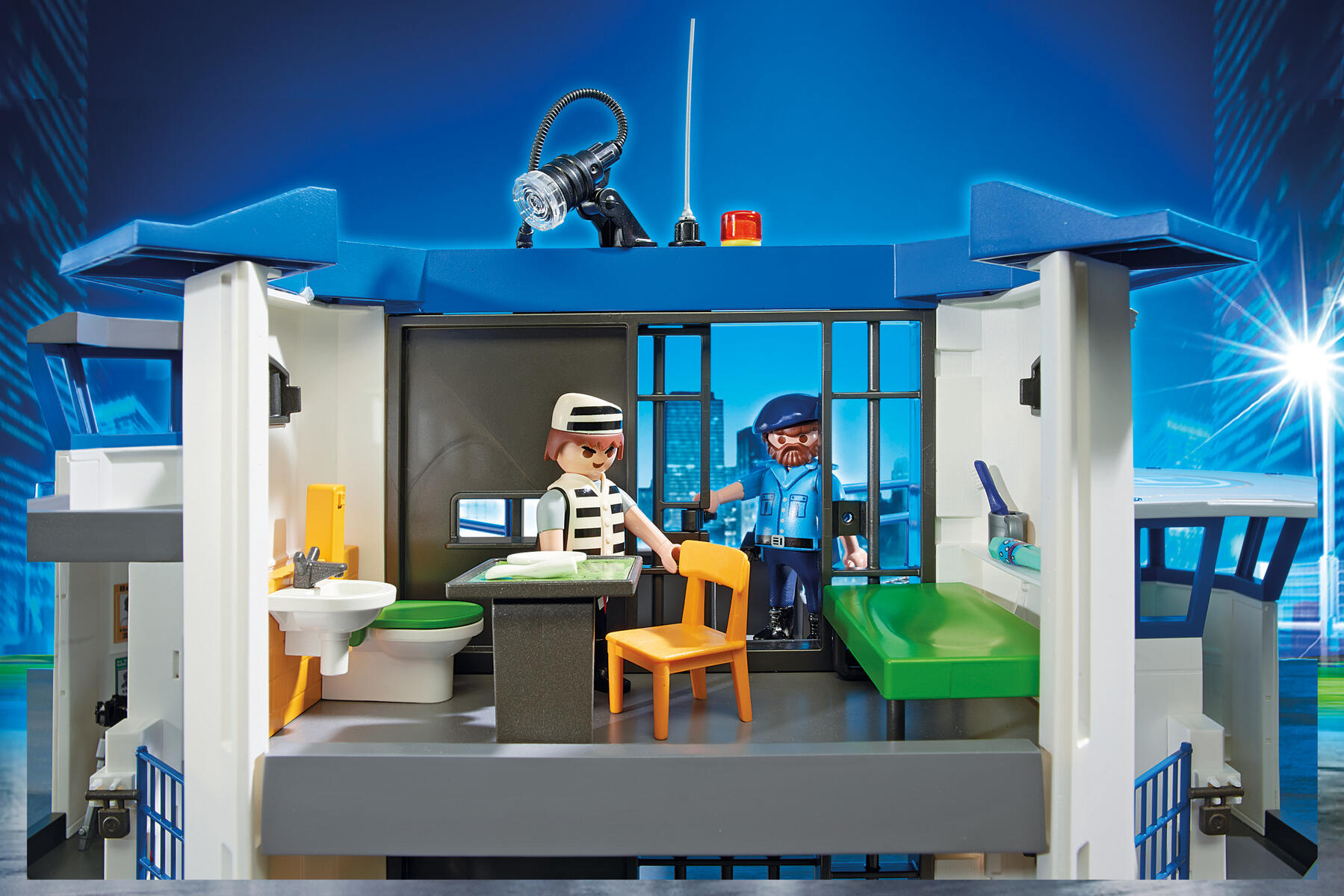 51 delar. Ett stort polishus med kontor och 2 fängelseceller. Fången kan rymma genom en uttagbar vägg. Med fingeravtrycksläsare, vakttorn och landningsbas för helikopter. Inkluderar 2 poliser och en fånge. Av ABS. PVC-fri. Från 4 år.