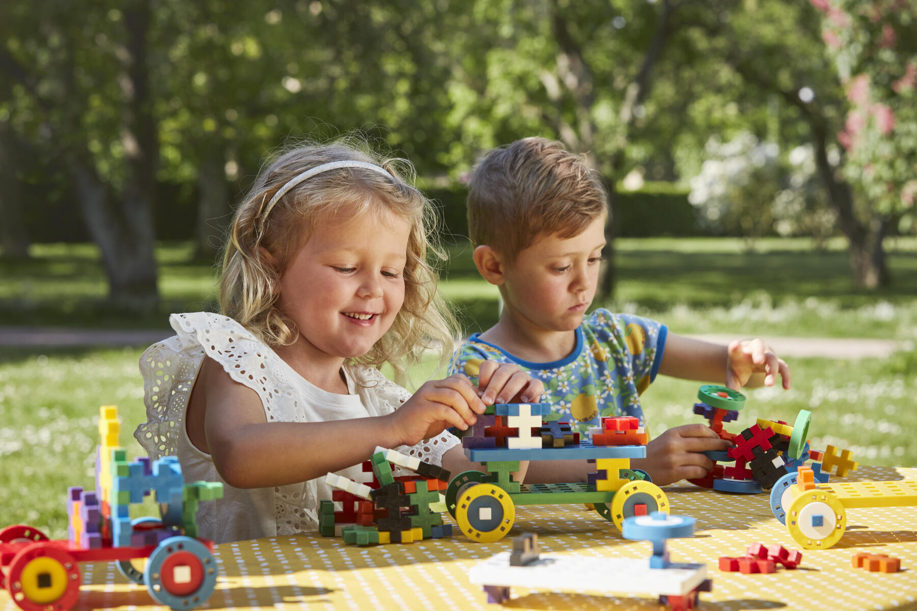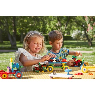 2650 delar. Ett set med 2 600 klossar i basfärger, 40 hjul och 10 byggplattor. Klossarna är lätta att sätta samman och man kan bygga både 2-och 3-dimensionellt med dem. Perfekt set för att bygga bilar med byggplattorna och hjulen. Mått på kloss: 20x12x4 mm. Mått på byggplatta: 11x4,8x0,4 cm. Mått på hjul: ø 3,5 cm. Av livsmedelsgodkänd PE och ABS. PVC-fri. Från 3 år.