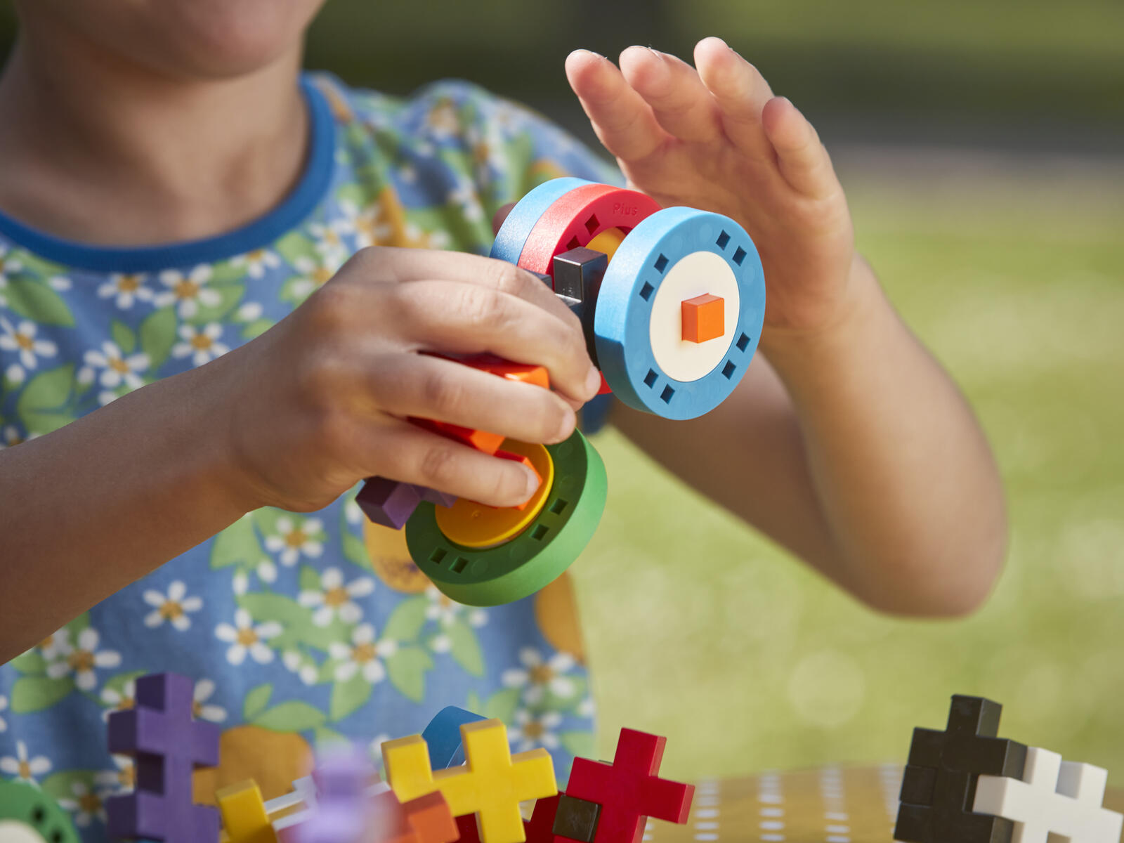 100 delar. Innehåller 20 byggplattor och 80 hjul i mixade färger. Tillbehören är lätta att sätta samman och utvecklar barns fantasi och kreativitet. Perfekt set för att bygga bilar med. Av livsmedelgodkänd PE. PVC-fri. Från 3 år.