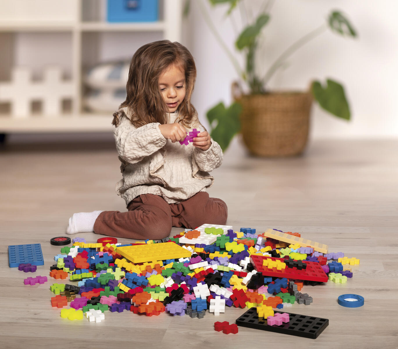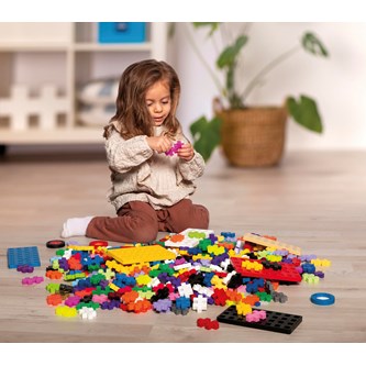 6 000 st/fp. Ett gigantiskt set med klossar i både neon, pastell och basfärger. Klossarna är lätta att sätta samman och man kan bygga både 2-och 3-dimensionellt med dem. Mått på kloss: 20x12x4 mm. Av livsmedelsgodkänd PE. PVC-fri. Från 3 år.