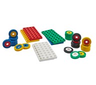 30 delar. Innehåller 24 hjul och 6 byggplattor i mixade färger. Tillbehören är lätta att sätta samman och utvecklar barns fantasi och kreativitet. Perfekt set för att bygga bilar med. Av livsmedelgodkänd PE. PVC-fri. Från 3 år.