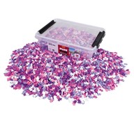 6 000 st/fp. Ett gigantiskt set med klossar i både neon, pastell och basfärger. Klossarna är lätta att sätta samman och man kan bygga både 2-och 3-dimensionellt med dem. Mått på kloss: 20x12x4 mm. Av livsmedelsgodkänd PE. PVC-fri. Från 3 år.