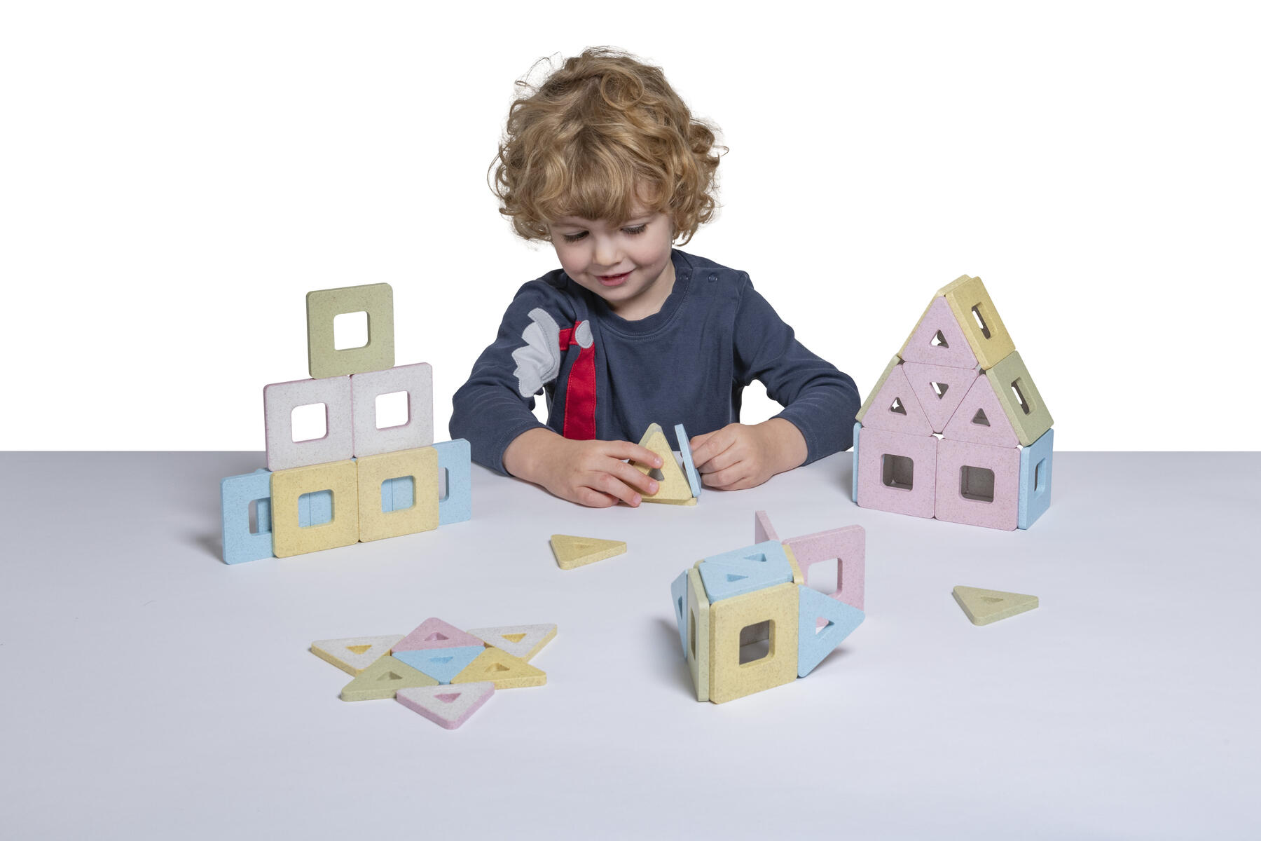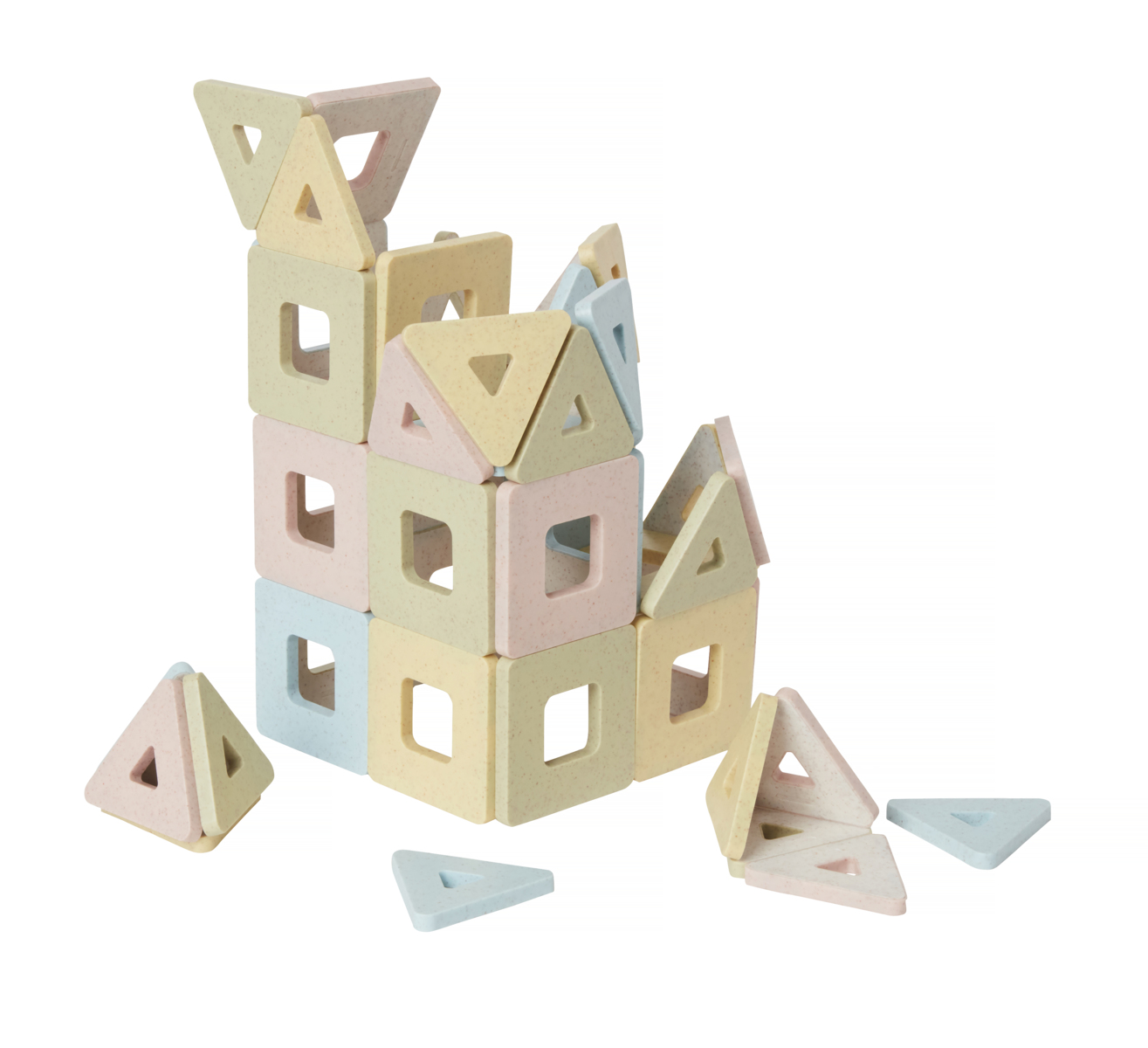 48 delar. Ett roligt magnetbyggset för de yngsta barnen. Består av magnetiska trianglar och kvadrater som enkelt kan sättas ihop för att skapa en mängd kreativa konstruktioner. Innehåller 24 trianglar och 24 kvadrater. Storlek på kvadrat är 7x7 cm. Av ABS. PVC-fri. Från 1 år.