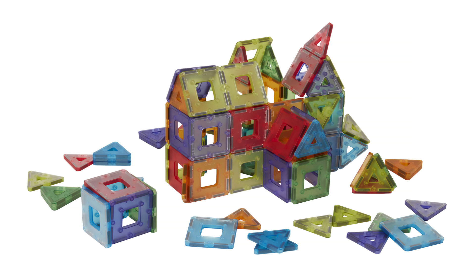 36 delar. Stora magnetiska klossar som uppmuntrar barnen att utforska geometri i både 2D och 3D. Passar bra att använda på ljusbord eller vid annan ljuskälla. Tränar även problemlösning, strategi och logiskt tänkande. Innehåller kvadrater och trianglar i härliga färger. Av ABS. PVC-fri. Från 3 år.