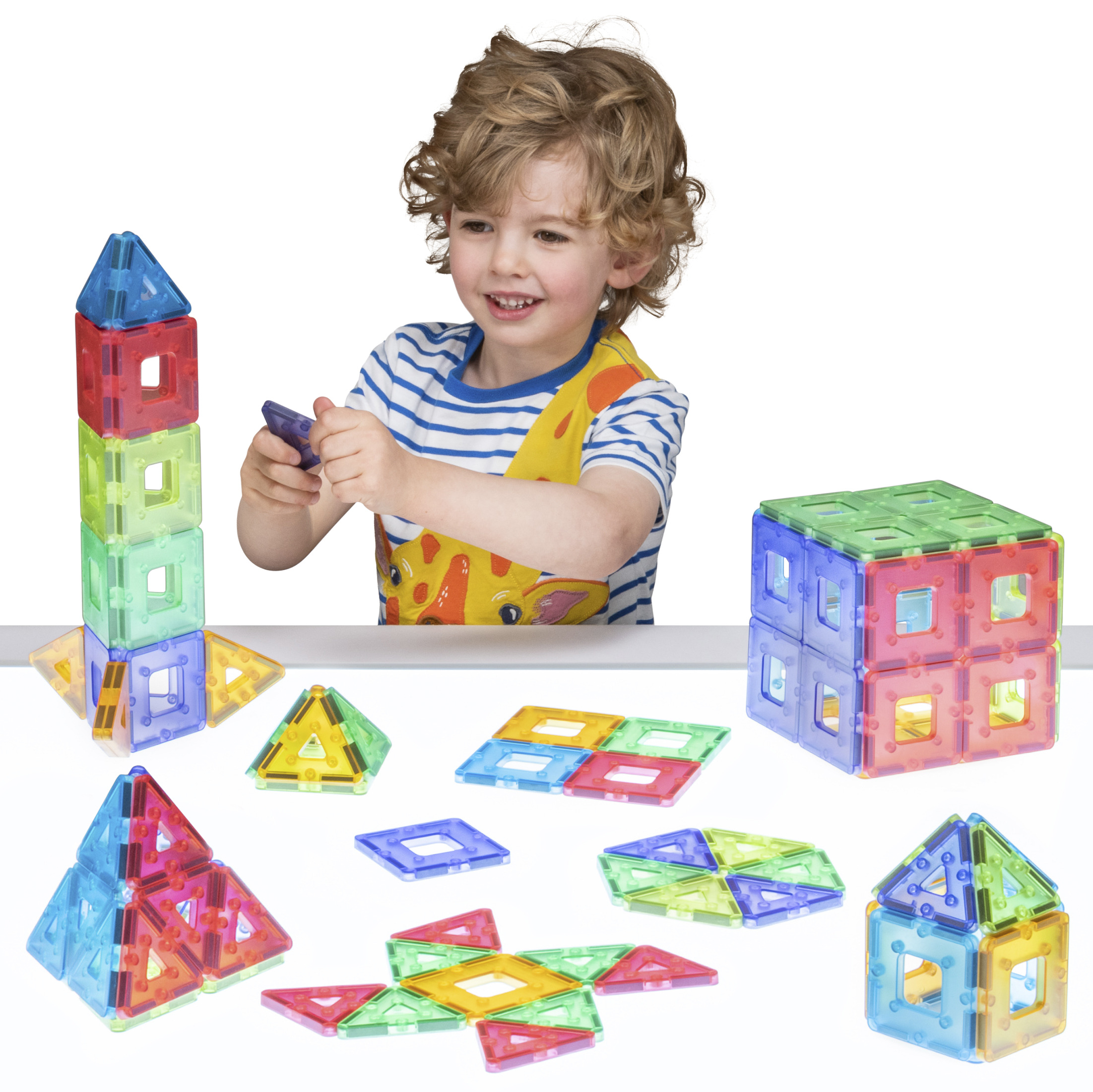 48 delar. Ett roligt magnetbyggset för de yngsta barnen. Består av magnetiska trianglar och kvadrater som enkelt kan sättas ihop för att skapa en mängd kreativa konstruktioner. Innehåller 24 trianglar och 24 kvadrater. Storlek på kvadrat är 7x7 cm. Av ABS. PVC-fri. Från 1 år.