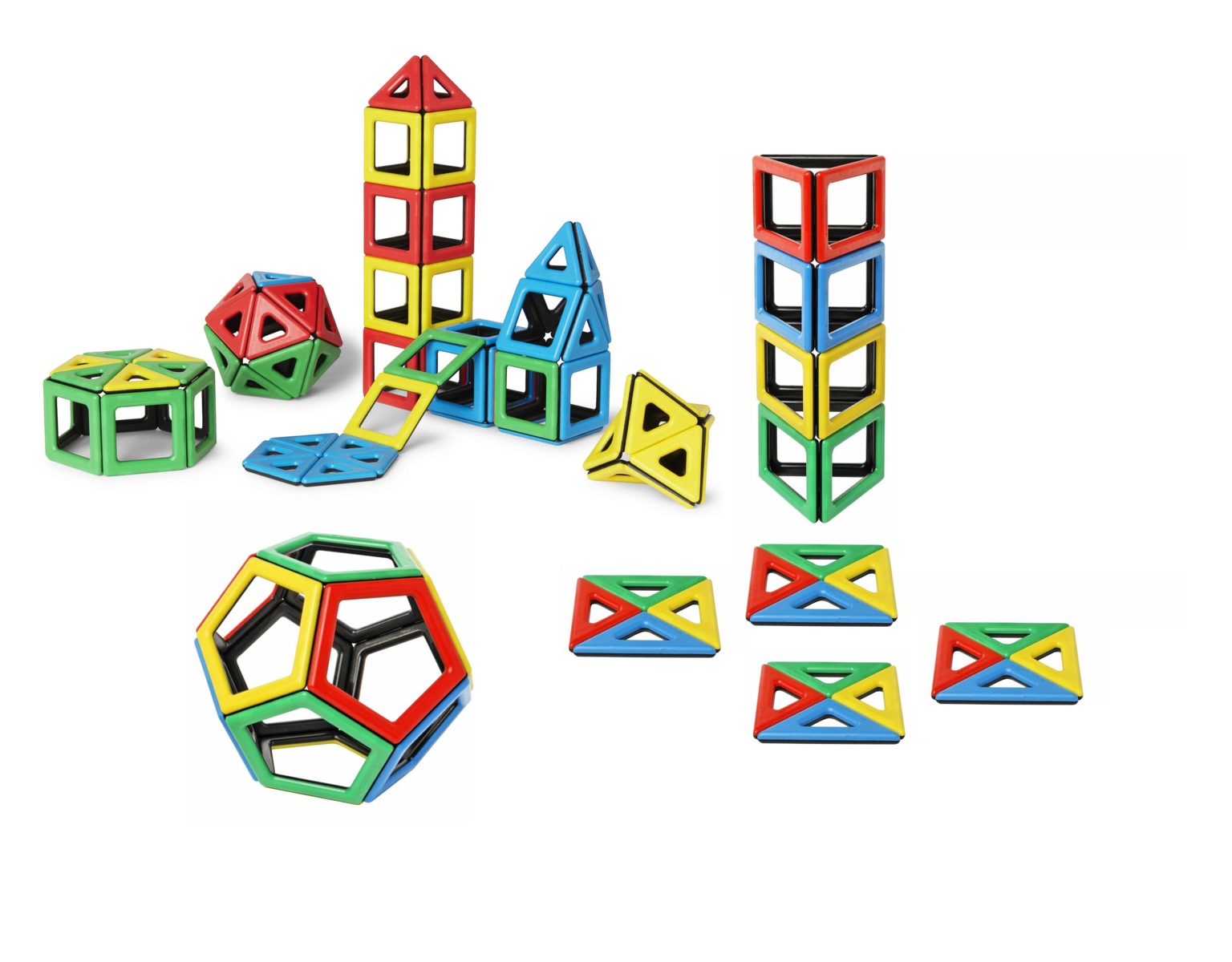 48 delar. Extra delar för att utöka ert magnetiska byggsystem. Innehåller rektanglar, trianglar och pentagoner.
