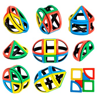 72 delar. Polydrons fantastiska magnetiska byggklossar med böjda delar som möjliggör för barnen att utforska olika sfäriska former. Innehåller cylinder, kvadrant, kvadrat och kon. Setet kan även kombineras med vår artikel 15175, vilket blir en riktigt stor sats med oändliga byggmöjligheter. Byggförslag medföljer. Tvättråd: Handtvätt med alkoholbaserad ytdesinfektion. Av ABS. PVC-fri. Från 3 år.