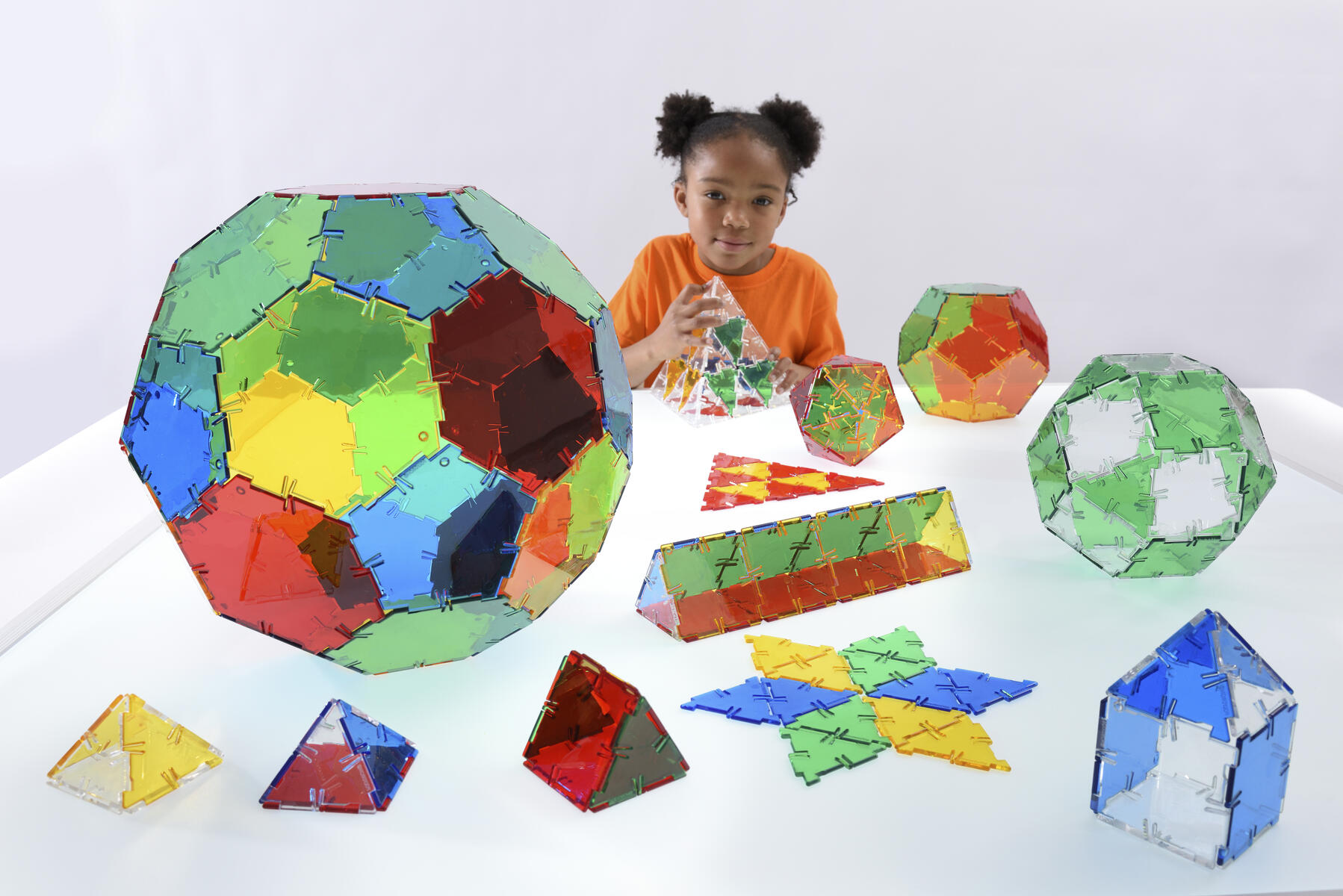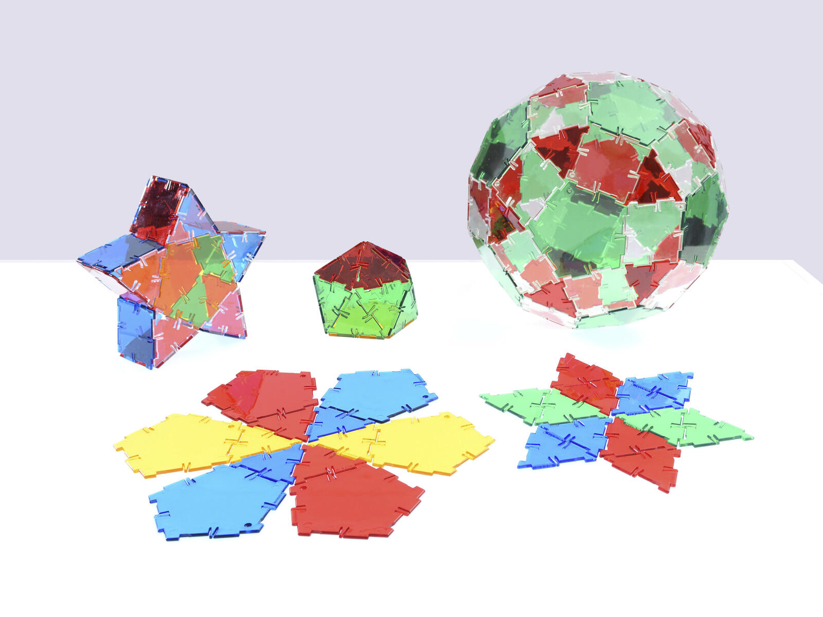 164 delar. Ett set från Polydron med nya transparenta delar som är fina att använda på t.ex. ett ljusbord. Polydron är ett roligt tredimensionellt byggsystem med hållbara plastformer som knäpps ihop genom ett unikt klämgångjärn som inte kräver några smådelar. Setet innehåller kvadrater, trianglar och pentagoner. Tvättråd: Diskmaskin upp till 70 grader. Av ABS. PVC-fri. Från 4 år.