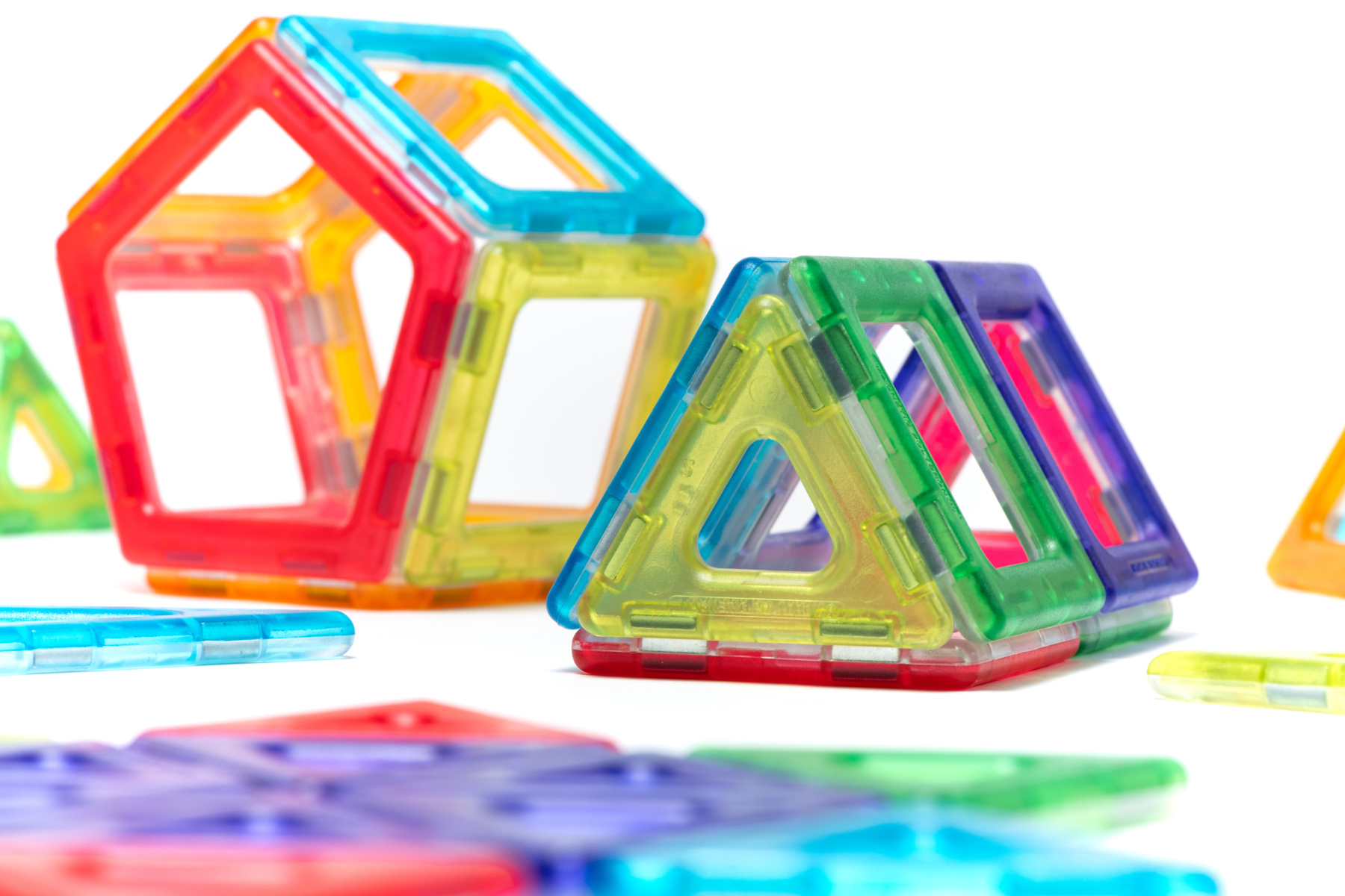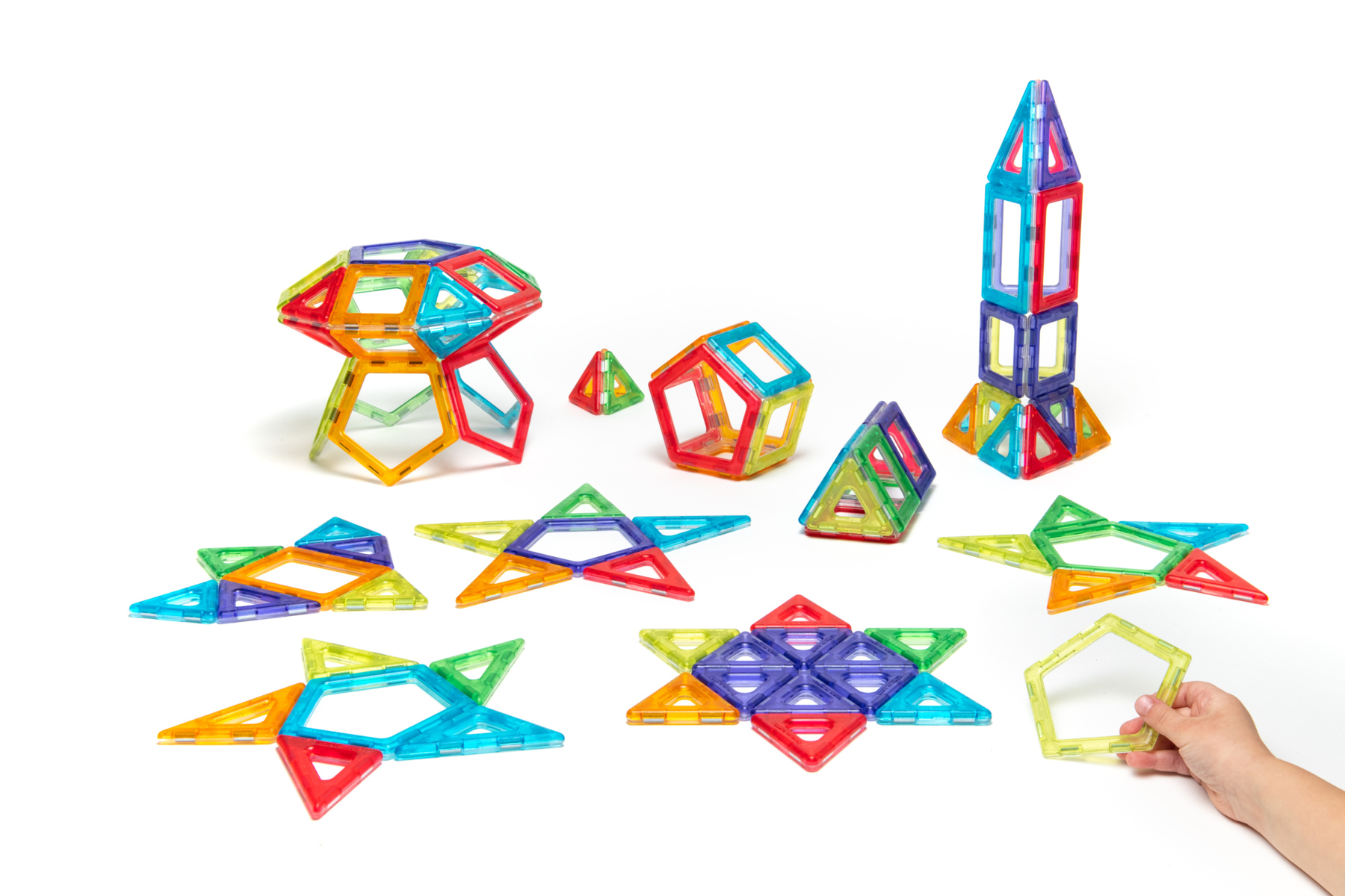 36 delar. Stora magnetiska klossar som uppmuntrar barnen att utforska geometri i både 2D och 3D. Passar bra att använda på ljusbord eller vid annan ljuskälla. Tränar även problemlösning, strategi och logiskt tänkande. Innehåller kvadrater och trianglar i härliga färger. Av ABS. PVC-fri. Från 3 år.